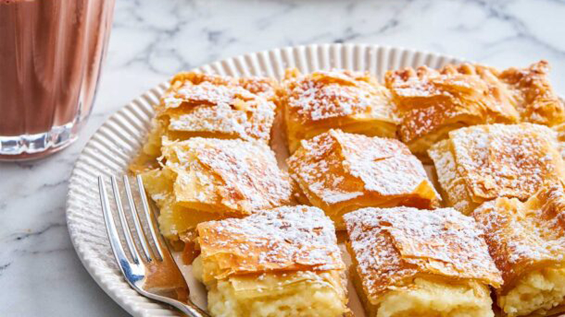 Σερβίρουμε την μπουγάτσα πασπαλισμένη με λίγη άχνη.