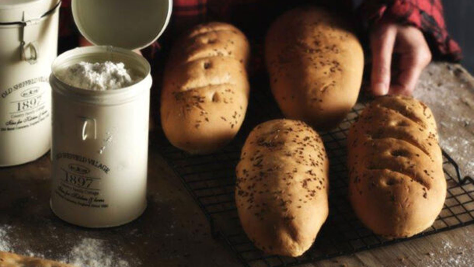 - Ξεσκεπάζουμε το ψωμί και αλείφουμε τις φραντζόλες με λίγο νερό. Πασπαλίζουμε με τους σπόρους γλυκάνισου.