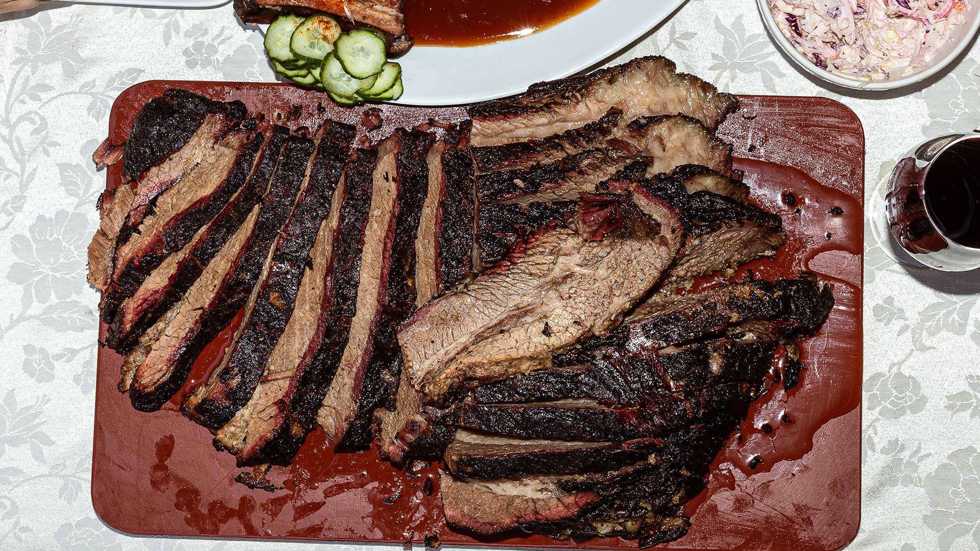 Το brisket είναι βοδινό στήθος, κομμάτι από ένα σημείο που του ζώου που «γυμνάζεται» πολύ, και χρειάζεται χρόνο για να μαλακώσει. Σιγοψημένο και σιγοκαπνιστό, όμως, γίνεται πολύ ζουμερό. Ο Βασίλης Σπόρος, σεφ και ιδιοκτήτης του Po’ Boys στου Ψυρρή, μας δίνει την συνταγή για αυτό το Texas style brisket, που μας πάει μέχρι τη νοτιοκεντρική πολιτεία της Αμερικής που το μπάρμπεκιου το έχει στο DNA της. Όπως εξηγεί, το κρέας που θα επιλέξουμε παίζει καθοριστικό ρόλο. «Είναι απαραίτητο να προμηθευτούμε το κατάλληλο brisket, με ομοιόμορφο στρώμα λίπους στην επάνω επιφάνειά του και με κατάλληλη κατανομή ενδομυϊκού λίπους. Τέτοιες προδιαγραφές πληρούν βοοειδή από χώρες με σημαντική εκτροφή, όπως οι ΗΠΑ, η Αυστραλία, η Νέα Ζηλανδία, η Ιρλανδία και η Ισπανία – καλό είναι να προμηθευτούμε το κρέας από ειδικευμένα κρεοπωλεία, με αυτή τη σειρά αναζήτησης ανά χώρα. Οι εγχώριες μοσχίδες, αν και εξαιρετικής νοστιμιάς και ποιότητας, δεν έχουν την κατάλληλη ποσότητα και κατανομή ενδομυϊκού λίπους», μας λέει.