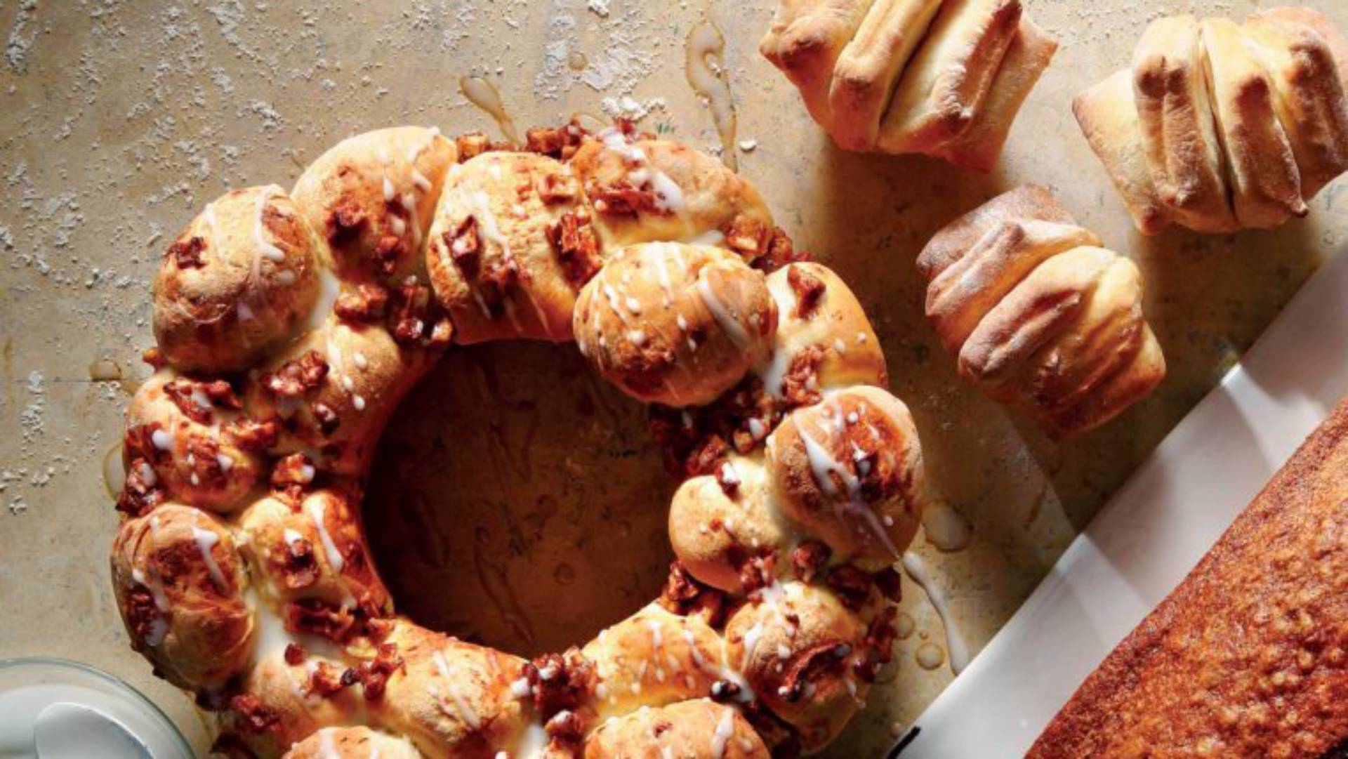 Στην πιο σύνθετη μορφή του το τραβηχτό ψωμί είναι σαν αυτό που προτείνουμε εδώ: αντί για ενιαίο κομμάτι, η ζύμη κόβεται και πλάθεται σε μπαλάκια, που καθώς ψήνονται φουσκώνουν και γίνονται αυτόνομες μπουκιές, για να τραβήξει ο καθένας τη δική του. Εντυπωσιακό και απίθανα νόστιμο, αυτό το ψωμί είναι ιδανικό για γλυκό μπουφέ, για ένα γιορτινό, περιποιημένο πρόγευμα ή απλώς για να συνοδεύσει τον απογευματινό μας καφέ.