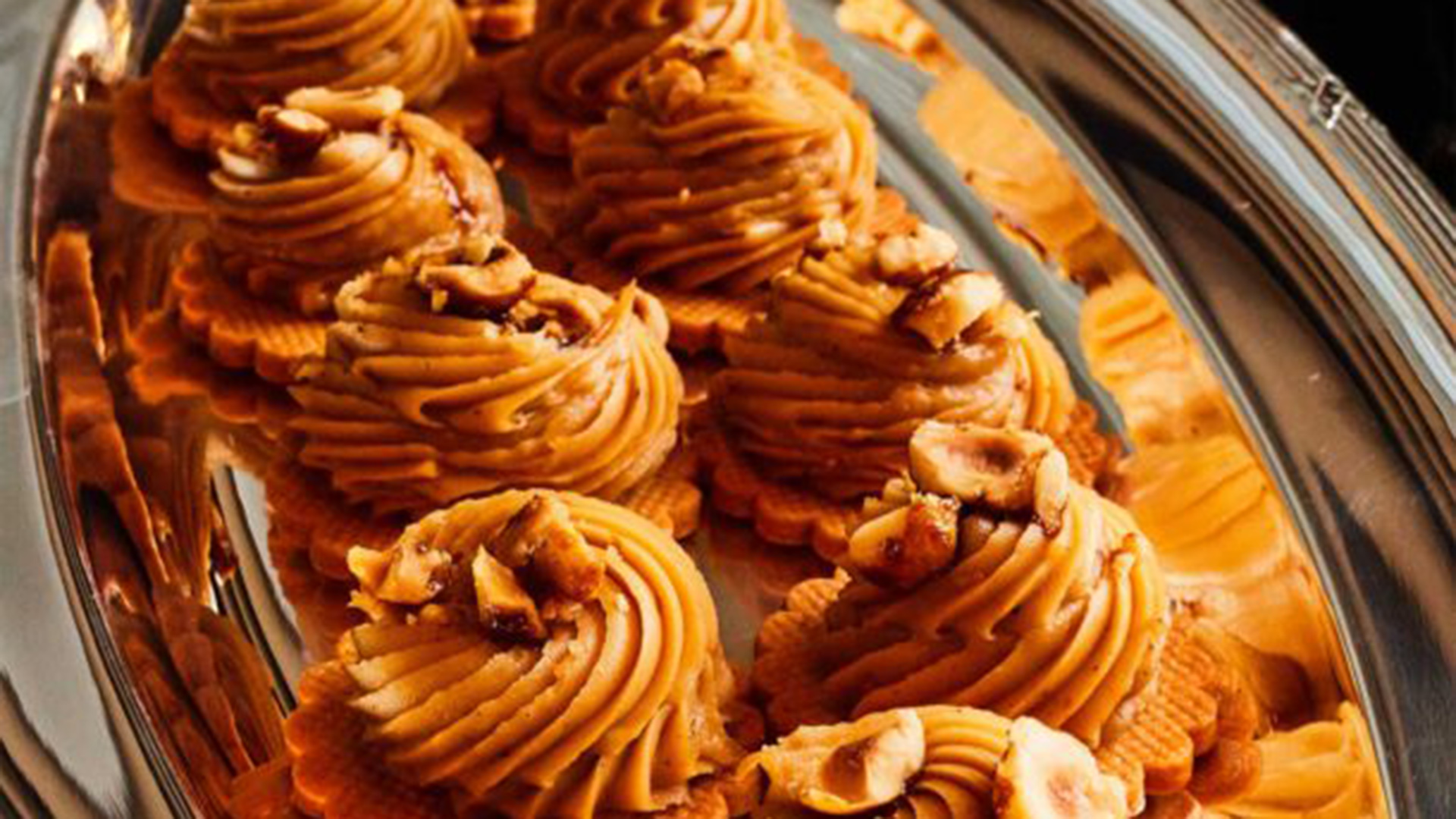 Εχουν μια παιδική γεύση, μια γλυκιά αθωότητα αυτά τα βουτυρένια, αρωματικά μπισκότα. Καλύπτονται με την πιο πλούσια κρέμα και σπιτική πραλίνα και είναι ιδανικά τόσο για επιδόρπιο μαζί με τον καφέ, όσο και για πρωινό κάθε ημέρα γιορτινή ή καθημερινή.