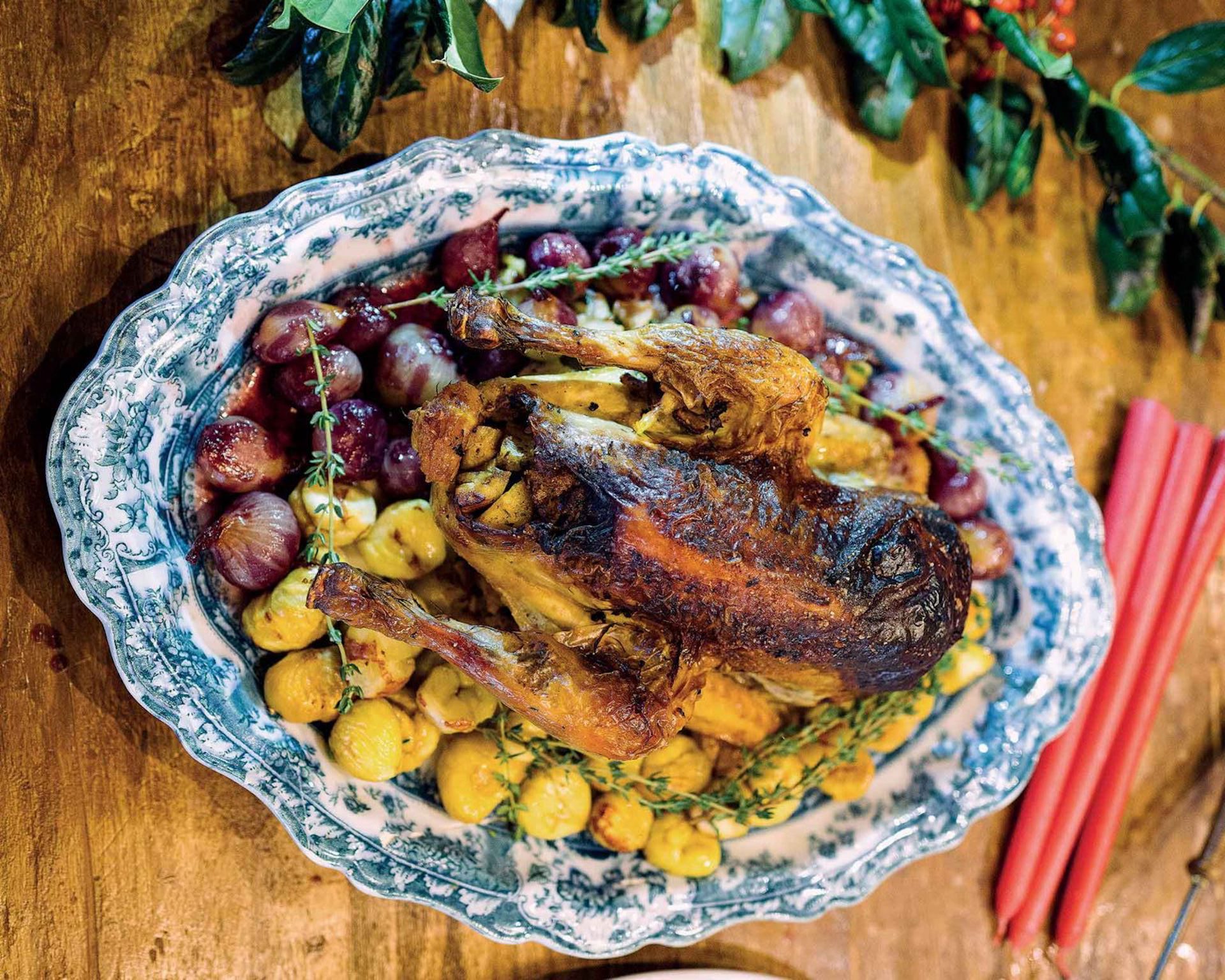 Βασισμένη σε παραδοσιακή χριστουγεννιάτικη συνταγή της Γαλλίας, της Ελβετίας και του Ηνωμένου Βασιλείου, είναι η εκδοχή της φραγκόκοτας με κάστανα που έφτιαξε ο Χριστόφορος Πέσκιας χρησιμοποιώντας βουνίσια υλικά της Πίνδου. Πρόκειται για ένα φαγητό πλούσιο και γιορτινό. Τα ψημένα κυβάκια του ψωμιού, που δίνουν υπόσταση και σώμα στη γέμιση, στο Περτούλι τα λένε μπουκουσούλες, τα ψήνουν με βούτυρο και τα τρώνε με τον τραχανά.