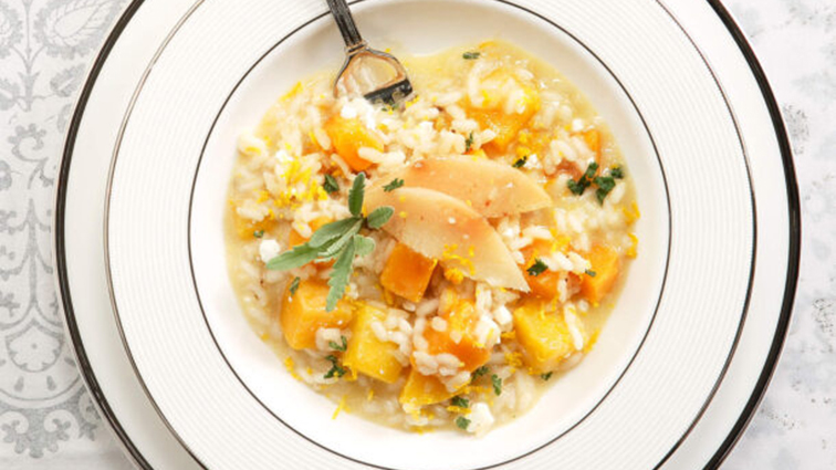 - Για να φτιάξουμε το ριζότο με κολοκύθα, κατσικίσιο τυρί και ψητά κυδώνια αρχικά προθερμαίνουμε το φούρνο στους 180° C.