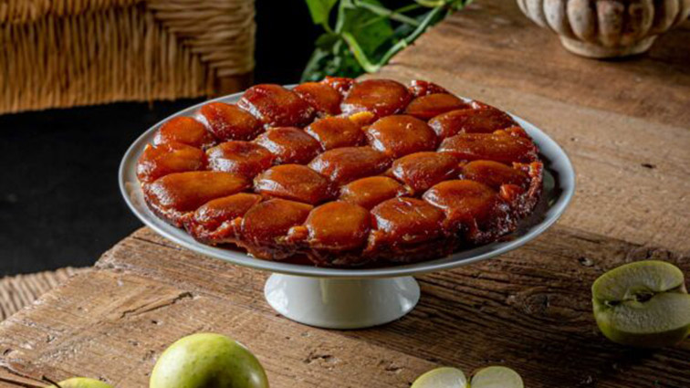 - Επειτα, προσεκτικά αναποδογυρίζουμε σε πιατέλα την tarte Tatin, τη θρυλική ανάποδη γαλλική μηλόπιτα.