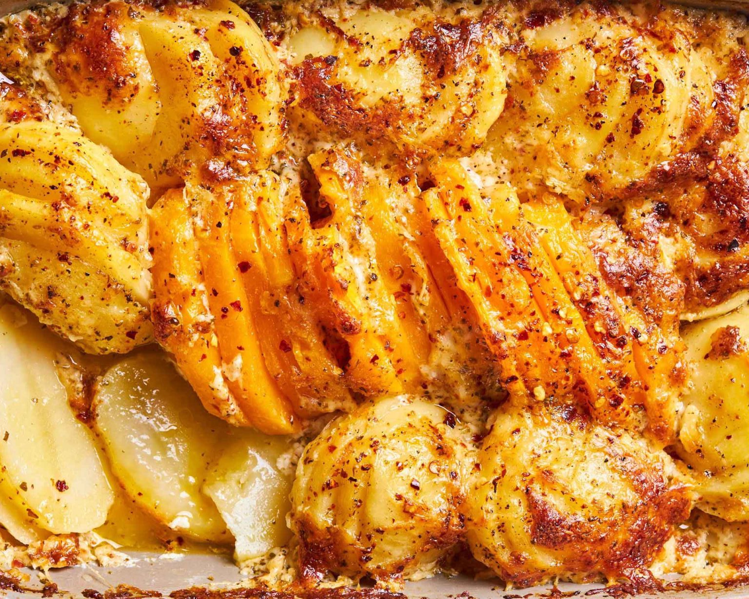 Βουτιά στην απόλαυση είναι αυτές οι βουτυρένιες πατάτες dauphinoise με κολοκύθα, τριμμένη γραβιέρα και μπόλικα αρωματικά.