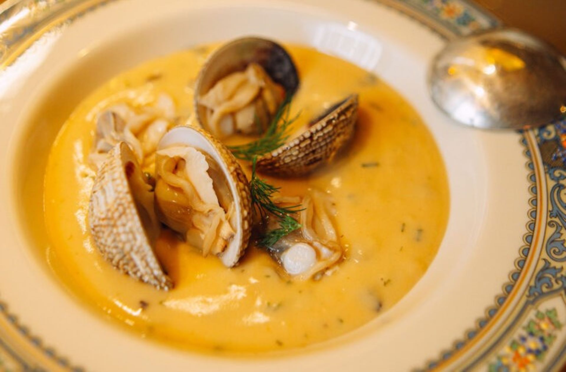 - Βάζουμε μέσα στη σούπα την ψίχα από τα όστρακα και κρατάμε ελάχιστη για τη διακόσμηση των πιάτων.