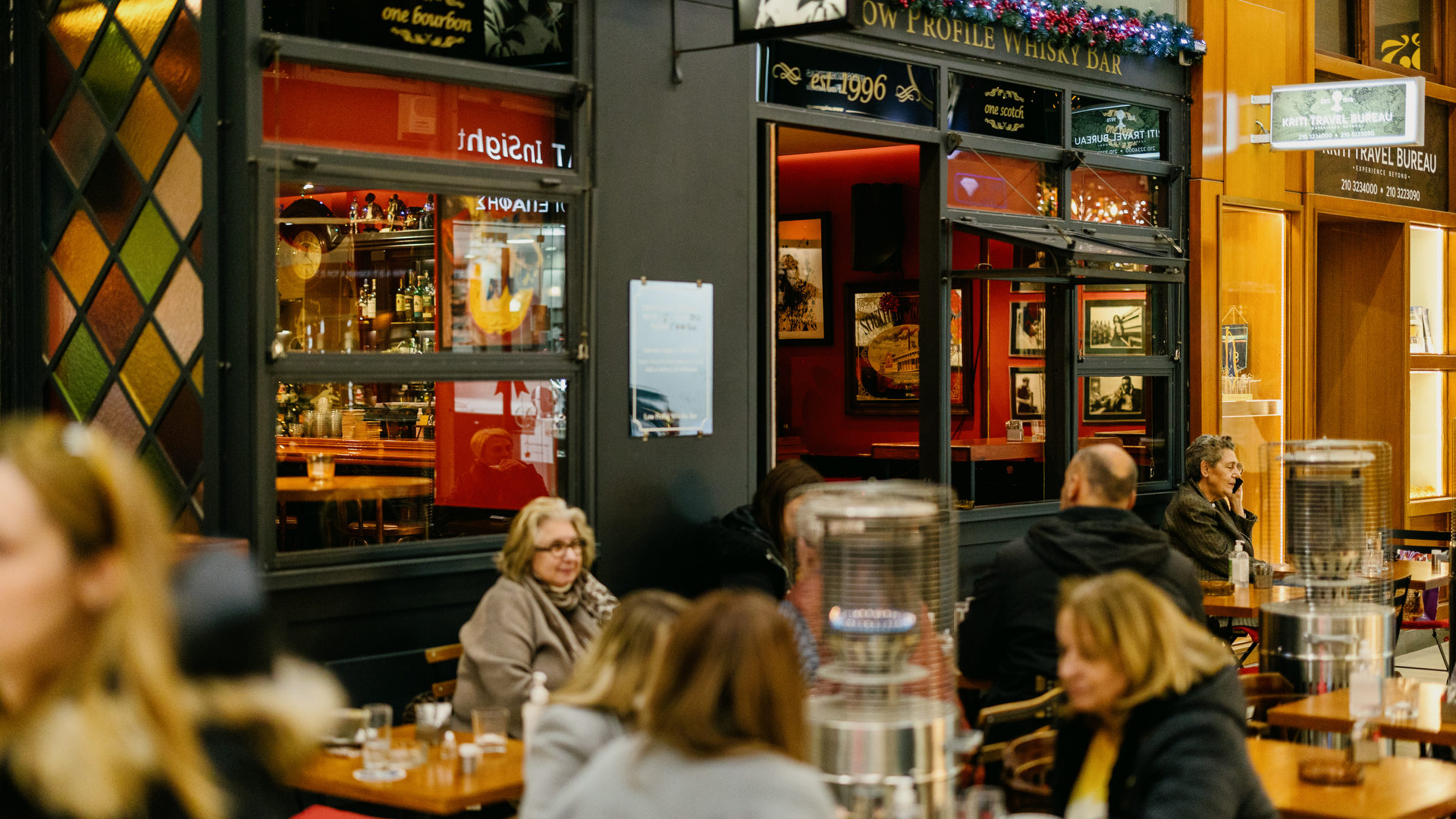 Αντί, όμως, να βγω από εκεί και να στρίψω στη γωνία που οι Αθηναίοι επί χρόνια και χρόνια έδιναν ραντεβού έξω από το κατάστημα Καλογήρου, κάνω την ίδια μίνι βόλτα προς τα πίσω, με σκοπό να πάρω μερικά τυλιγμένα σε σοκολάτα δαμάσκηνα από το Αριστοκρατικόν. Στη διαδρομή πετυχαίνω τον Μάριο Μπάσο, head bartender και συνιδιοκτήτη του Barreldier, να μπαίνει στα γρήγορα στο Τακούνι Eξπρές με δύο κομψά ποτηράκια στο χέρι, πριν επιστρέψει ξανά στο μπαρ του. «Να μην πιουν δύο σφηνάκια;» μου λέει γελώντας. Από ό,τι φαίνεται, οι διπλανοί έχουν και τα τυχερά τους. «Ίσως, αν όλα αυτά τα μαγαζιά βρίσκονταν έξω, στη σειρά, σε κάποιον δρόμο, να μην είχαμε την ίδια σχέση, αλλά είμαστε σε έναν κύκλο ανοιχτό και κλειστό μαζί – κι αυτό είναι κάτι που έχει γίνει φυσικά. Είναι μια γειτονιά συμπυκνωμένη η στοά», εξηγεί.