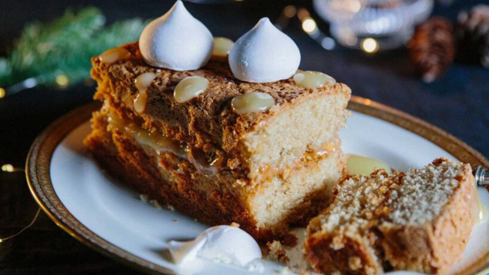 Ένας διαφορετικός χριστουγιεννιάτικος κορμός με το δροσερό άρωμα και τη γεύση του λεμονιού. Η βάση του είναι ένα κέικ λεμονιού, φίνο και μαλακό, και η γέμιση μια ντελικάτη κρέμα λεμονιού με αρωματικές νότες από βασιλικό. Η ίδια αυτή κρέμα καλύπτει και την επιφάνεια του κορμού – για πιο όμορφη εμφάνιση χρησιμοποιούμε σακούλα ζαχαροπλαστικής και φτιάχνουμε βουλίτσες με την κρέμα. Εδώ κι εκεί πάνω σε αυτές κολλάμε τραγανές μαρέγκες, που μπορούμε να φτιάξουμε ή να αγοράσουμε έτοιμες. Έτσι, σε κάθε μπουκιά εναλλάσσεται το μαλακό με το τραγανό στοιχείο, μια ωραία έκπληξη στο στόμα!
