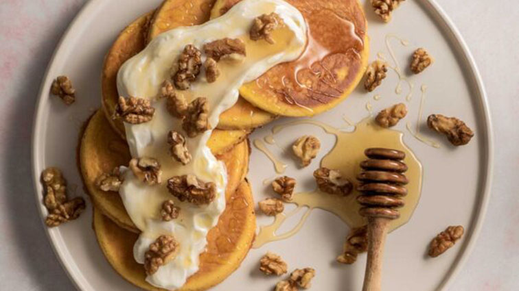 - Σερβίρουμε τα πανκέικ με καρυδόψιχα, μέλι ή γλυκό κουταλιού βύσσινο ή μαρμελάδα κόκκινη και γιαούρτι της αρεσκείας μας.