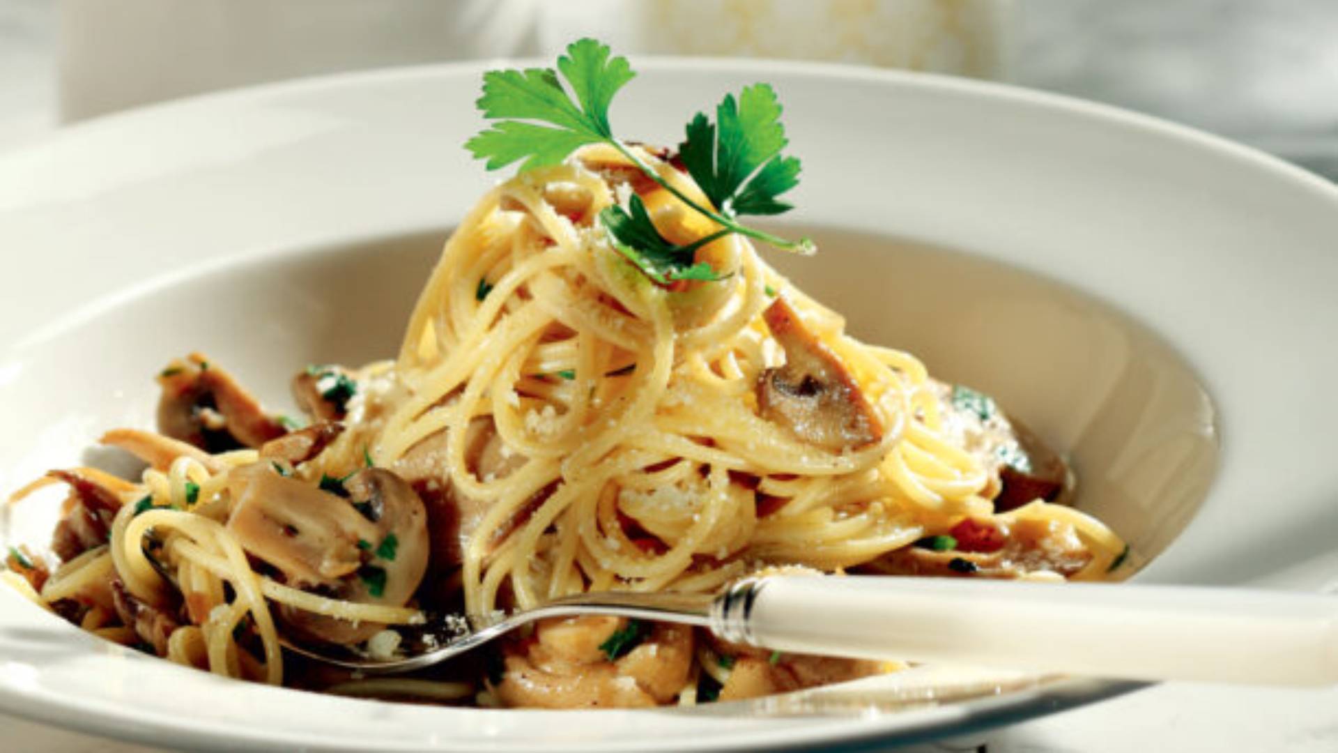 Μια καλή πρόταση για χορτοφάγους, καθώς τα μανιτάρια αποτελούν μια πλούσια πηγή πρωτεϊνών. Μπορείτε να αρωματίσετε τη λευκή σάλτσα με κρόκο Κοζάνης ή κάρι που δίνουν ένα ιδιαίτερο και έντονο χρώμα στο πιάτο.