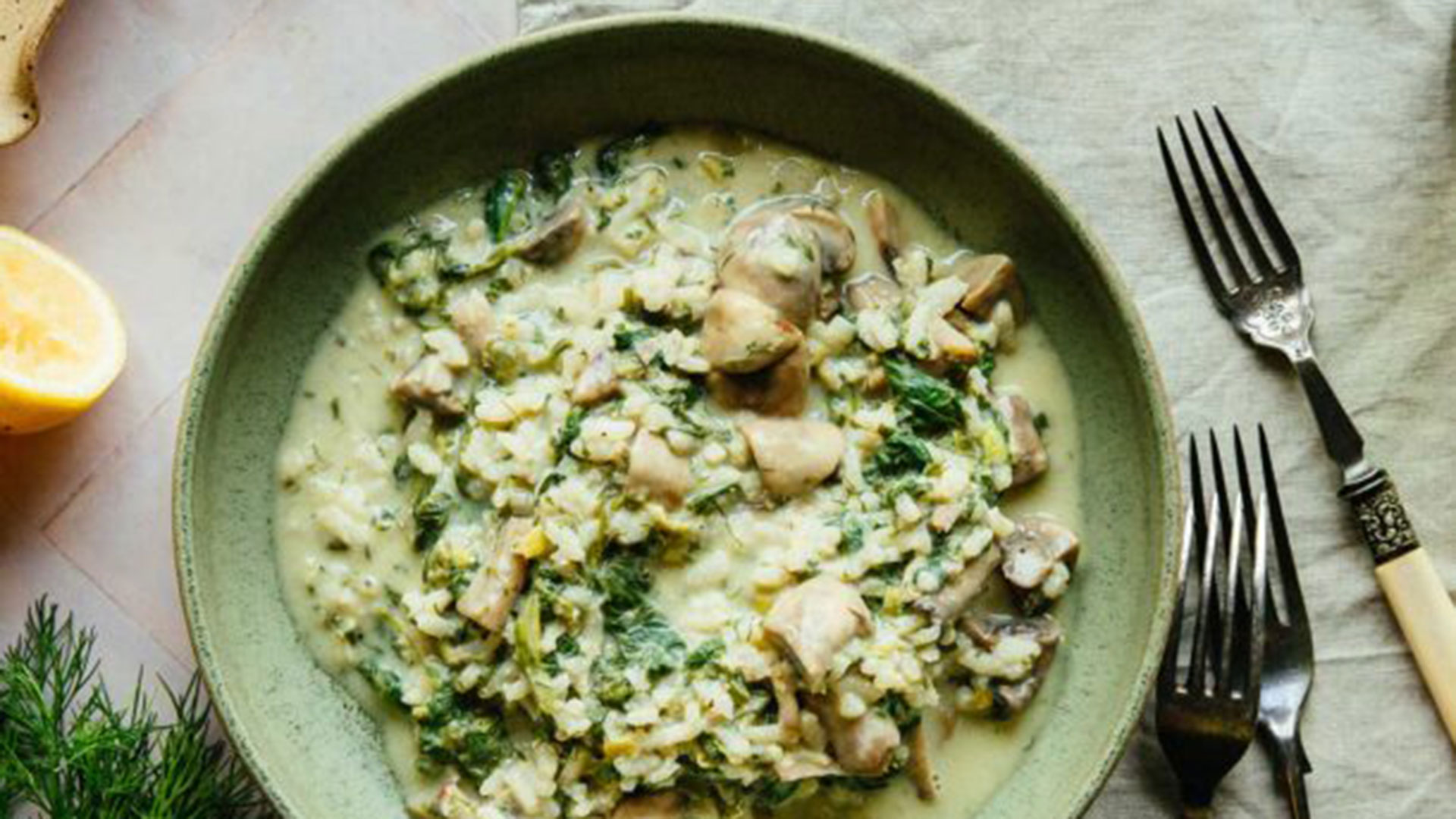 Μπορεί να μην έχει κρέας, αλλά είναι πεντανόστιμο αυτό το φρικασέ! Εύκολο, με απλά υλικά που συνήθως έχουμε στο σπίτι: μανιτάρια, σπανάκι, ρύζι, ένα ωραίο αυγολέμονο και… τρώμε.