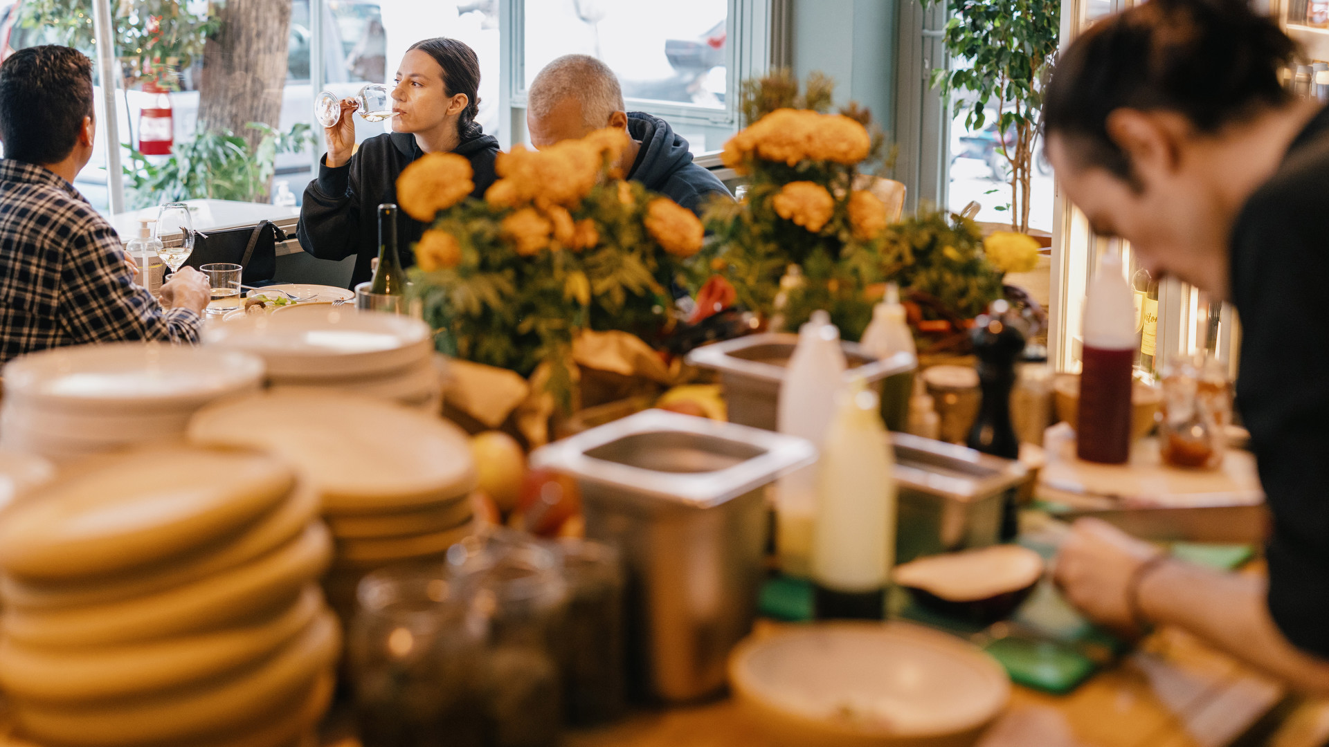 Αν και η κεντρική ιδέα παραμένει ίδια στο εστιατόριο του Νέου Κόσμου (ελληνικό φαγητό στο τώρα, διαλεγμένη πρώτη ύλη, ανεπιτήδευτη φρεσκάδα), η πρόσφατη αλλαγή στην κουζίνα έχει φέρει καινούργιες νοστιμιές. Τους τελευταίους τρεις μήνες η Κωνσταντίνα Κασπαρίδου, σεφ με καταγωγή από τον Έβρο και πορεία σε μαγαζιά όπως το Cantina της Σίφνου, είναι επικεφαλής και, κρίνοντας απ’ όσα δοκιμάσαμε πρόσφατα εκεί, έχει ταιριάξει πολύ ωραία στο Annie. Με έναν άνετο τρόπο συνδυάζει το παραδοσιακό με το φινετσάτο (όχι ξενέρωτο) και, παρόλο που «κεντάει» τα πιάτα της με διάφορες παρασκευές (η σκόνη ντομάτας που λέγαμε παραπάνω, αρωματισμένα λάδια, πίκλες και άλλα υλικά σε ζύμωση) το κάνει χωρίς να τα φορτώνει αχρείαστα.