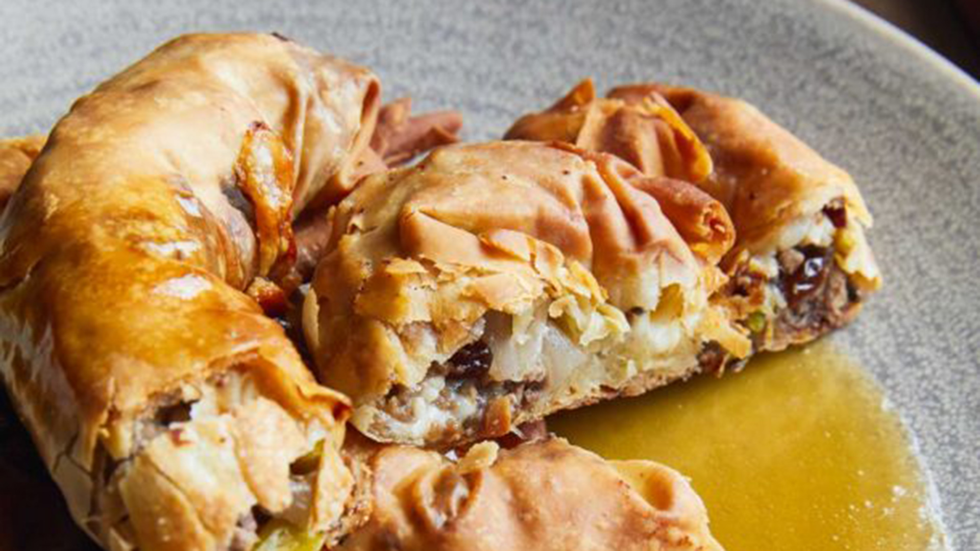 Η μικρασιατική κιμαδόπιτα με δυο κιμάδες, φυστίκι, γραβιέρα, φέτα και σταφίδα, που σερβίρεται με έναν πλούσιο ζωμό κρέατος τύπου gravy, είναι από αυτά τα σουλούδικα φαγιά που ευχαριστιέσαι όχι μόνο τη νοστιμιά τους, αλλά το νοιάξιμο και την απλοχεριά τους. Αυτός είναι ο τρόπος που μαγειρεύει ο ιδιοκτήτης της Φάμπρικας του Ευφρόσυνου, Γιώργος Γκάτσος, που μας έδωσε τη συνταγή για να τη φτιάχνουμε και στο σπίτι.