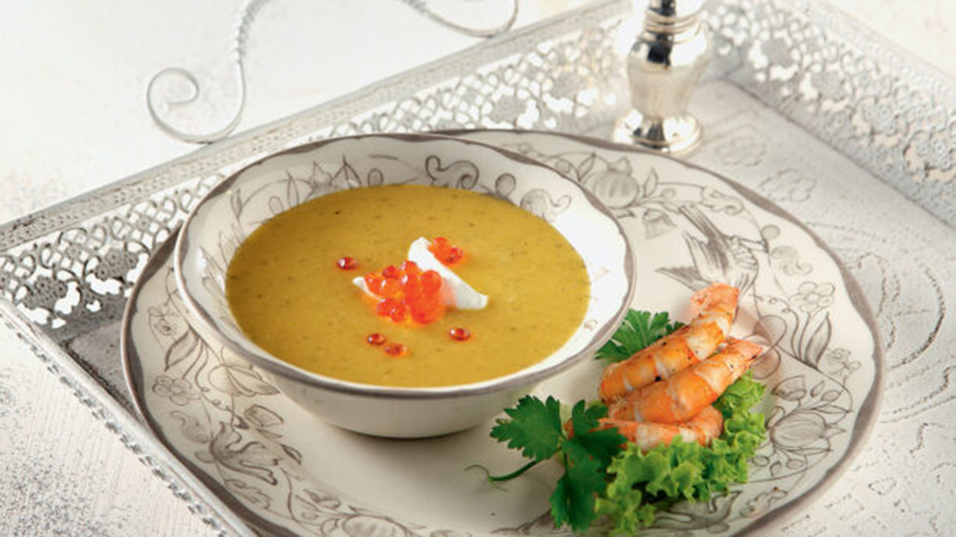 - Σερβίρουμε τη σούπα, γαρνίρουμε με λίγο γιαούρτι και λίγο μπρικ και συνοδεύουμε με τις γαρίδες.