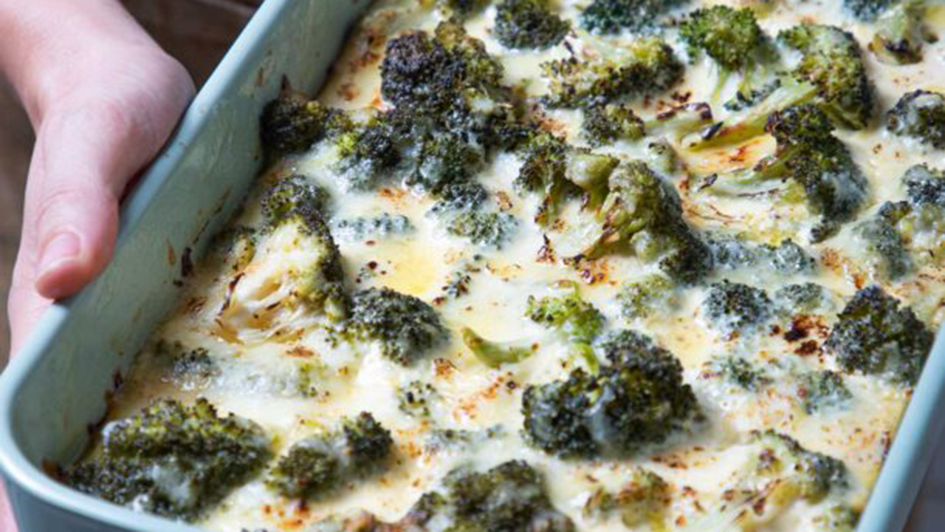 - Αδειάζουμε την κρέμα πάνω από τα μπρόκολα και ψήνουμε για 35-40 λεπτά, μέχρι να ροδίσουν στην επιφάνεια και να σφίξει η κρέμα.