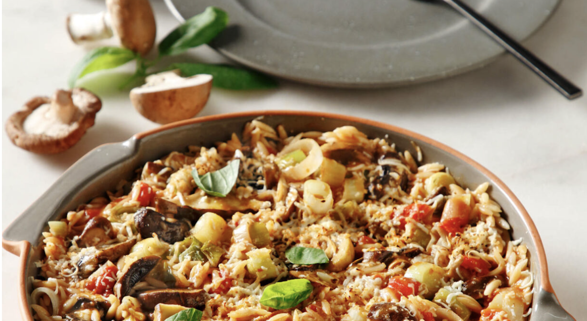 Αν και είναι «μια σκέτη από γιουβέτσι», αυτό το κριθαράκι είναι πλήρες, χορταστικό και πεντανόστιμο. Τα πράσα δίνουν γλύκα, τα μανιτάρια γήινη γεύση και το τυρί τις απαραίτητες εντάσεις.