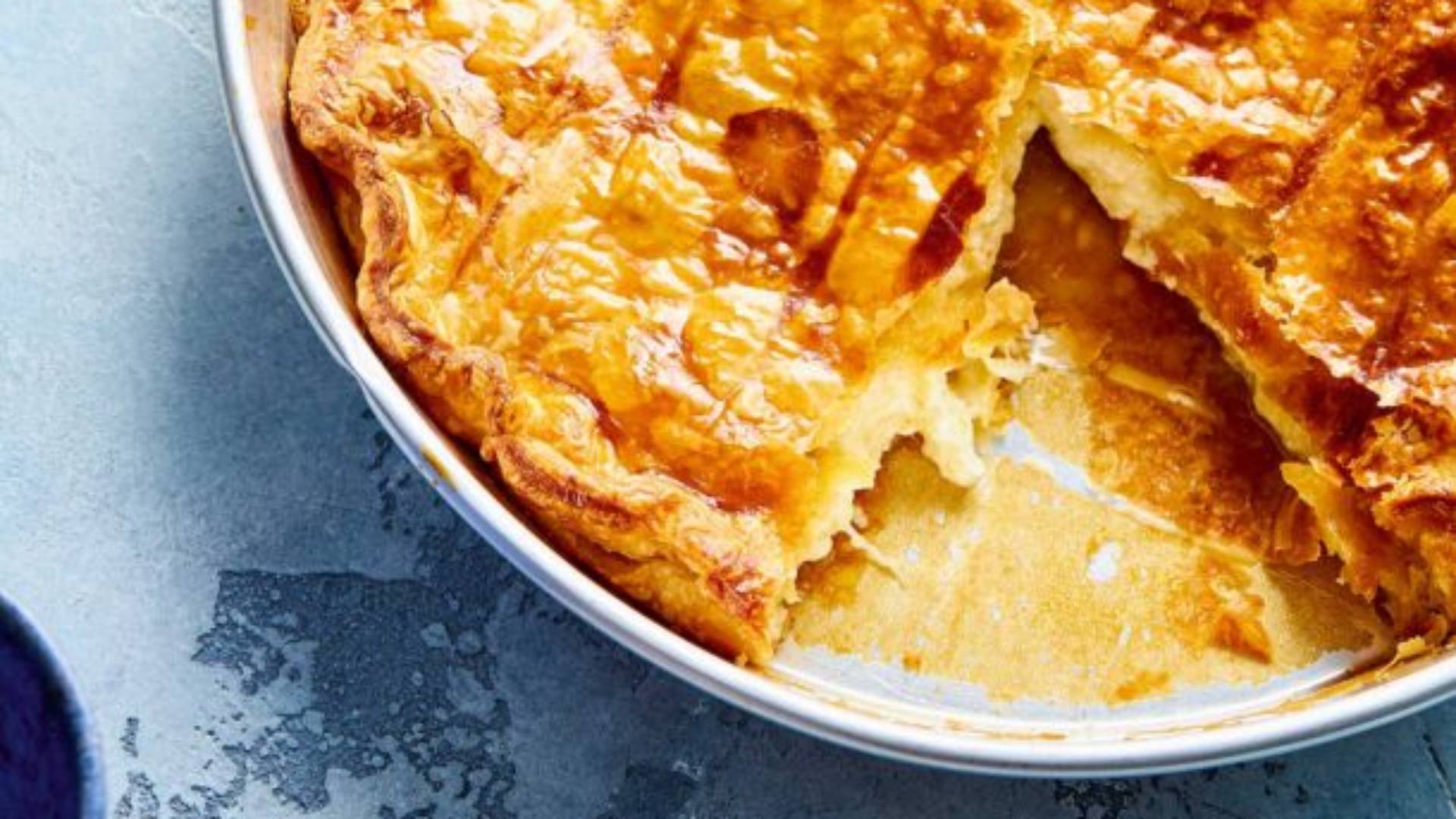 Τυρόπιτα με φύλλα σφολιάτας, πλούσια γέμιση με βουτυρένια μπεσαμέλ, μπόλικο κασέρι και γραβιέρα.