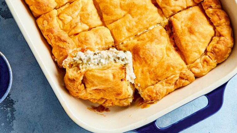- Ξεφουρνίζουμε, αφήνουμε την τυρόπιτα 15 λεπτά, να γίνει κάπως χλιαρή, και σερβίρουμε.
