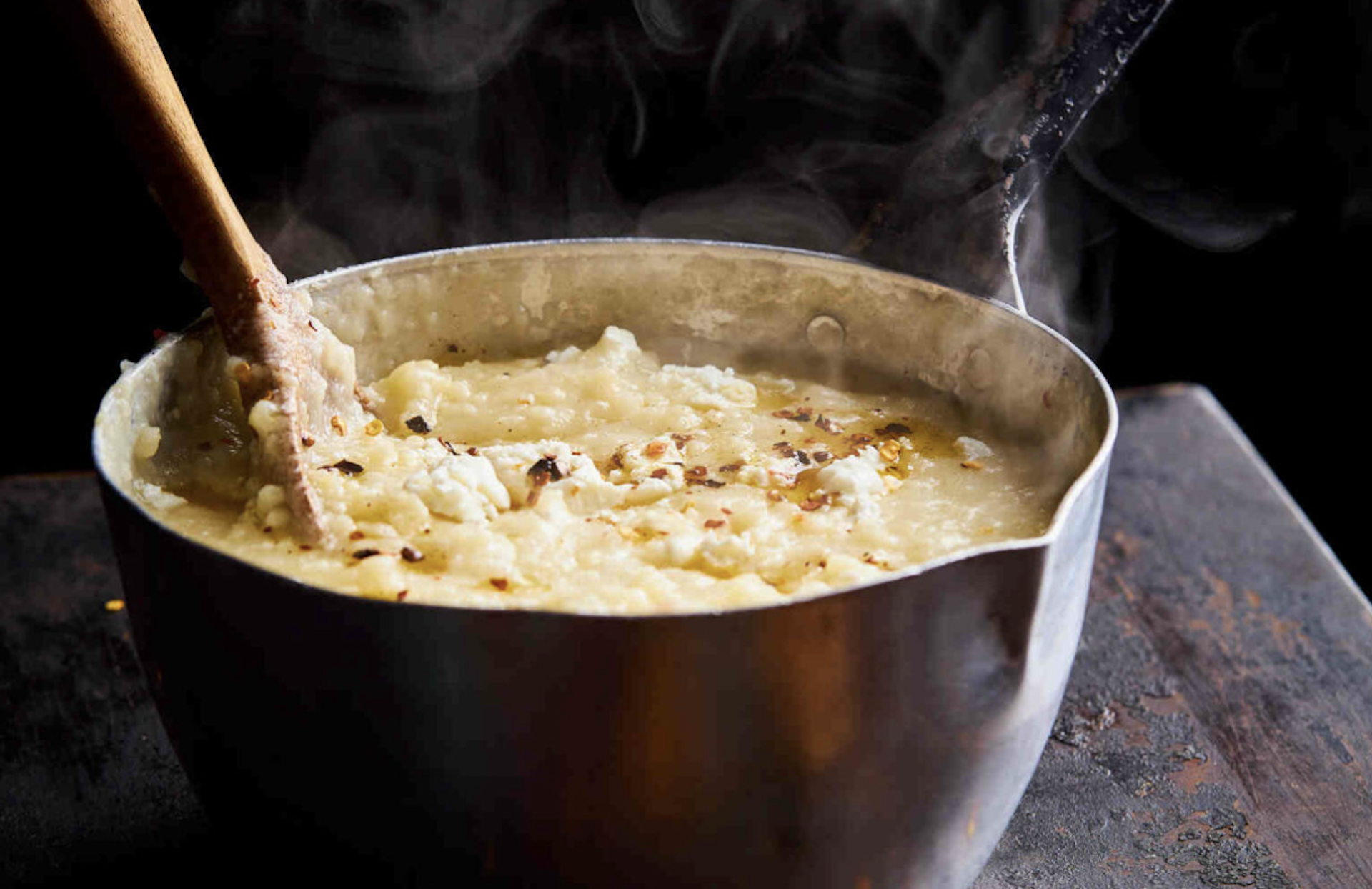 Στο τελείωμα, λίγο αιγοπρόβειο βούτυρο επιπλέον για έξτρα γεύση, πικάντικη, βαρελίσια φέτα χοντροτριμμένη (σκληρή, αν θέλουμε να τη νιώθουμε στο δόντι, ή μαλακιά αν θέλουμε να λιώσει) και μπόλικο πιπέρι, όσο αντέχουμε, και προτιμότερο φρεσκοτριμμένο και χοντρό να σκάει απολαυστικά στο μάσημα. Εναλλακτικά, καυτερό ή γλυκό μπούκοβο, το οποίο αν θέλουμε καίμε στο βούτυρο της συνταγής όπως και σε αυτή την παλιά γιαννιώτικη συνταγή.