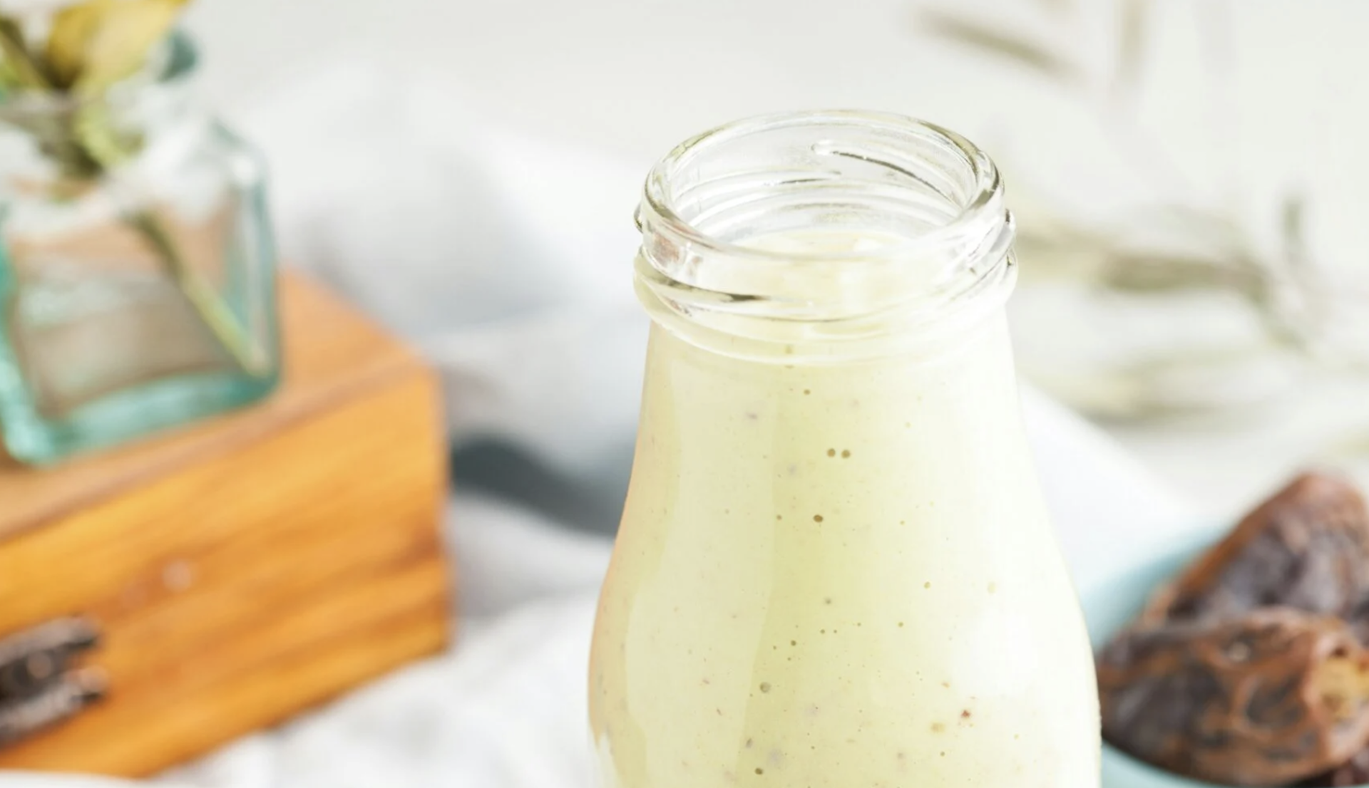 «Τα συστατικά για να το ετοιμάσετε στο σπίτι είναι: ½ φλιτζάνι γάλα αμυγδάλου χωρίς ζάχαρη, ½ κομμάτι μπανάνα, ¼ φλιτζάνι λιναρόσπορος, 2 κουταλιές της σούπας κουρκουμάς, 1 κουταλάκι του γλυκού φυστικοβούτυρο χωρίς ζάχαρη και ¼ κουταλάκι του γλυκού πιπέρι καγιέν».
