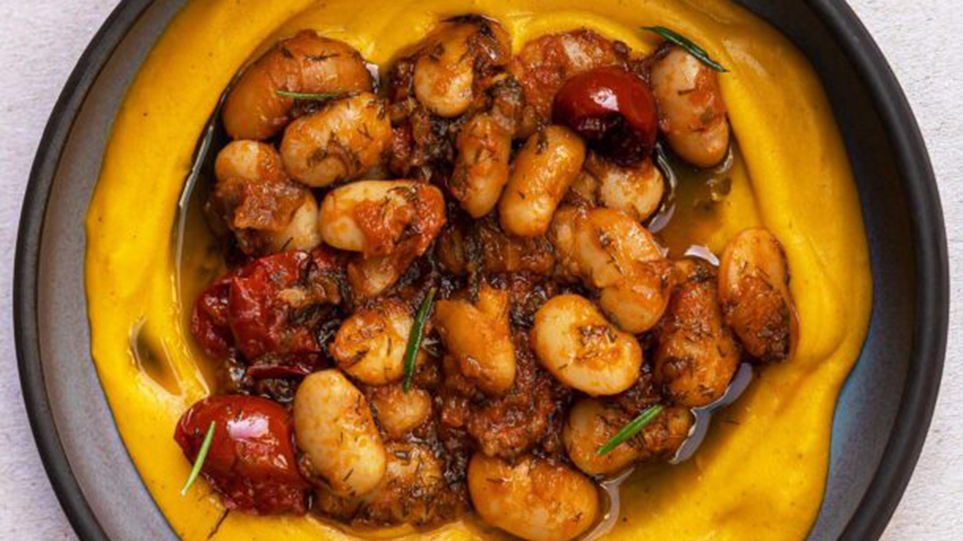 Η έμπνευση της Νένας Ισμυρνόγλου γι’ αυτό το πιάτο που συνδυάζει δύο όσπρια μαζί, ήρθε από τα αρχαία πολυσπόρια, ένα μαγειρικό πάντρεμα οσπρίων και δημητριακών. Η Νένα ψήνει τους γίγαντες στον ξυλόφουρνο, κάτι που τους δίνει επιπλέον βάθος γεύσης και νοστιμιά.