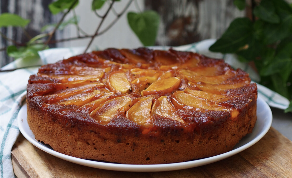 Στην Ελλάδα μεγαλώσαμε με τη μαμαδίστικη μηλόπιτα που πάλι βάζει τα μήλα στον πάτο, αλλά δεν τα σκεπάζει με ζύμη τάρτας ή με σφολιάτα αλλά με μείγμα κέικ. Η συνταγή που σας δίνουμε εδώ είναι αυτής της λογικής, αλλά πιο έμπειρη: τα μήλα τα καραμελώνουμε πρώτα ελαφρώς, ώστε να μαλακώσουν και να αποκτήσουν μια βαθιά γεύση και ωραίο χρώμα καραμέλας. Έπειτα, τα στρώνουμε όμορφα στον πάτο του ταψιού και από πάνω τα καλύπτουμε με το μείγμα του κέικ, το οποίο είναι αρωματισμένο με κάρδαμο. Αφού ψηθεί η μηλόπιτα, την τουμπάρουμε ώστε τα μήλα να έρθουν στην επιφάνεια. Σερβίρουμε με μια ωραία σος από κρέμα γάλακτος, για να δώσουμε μεγαλύτερη επισημότητα στην περίσταση. Όποιος προτιμάει, μπορεί να σερβίρει το γλυκό à la mode, δηλαδή με μια μπάλα παγωτό στο πλάι.