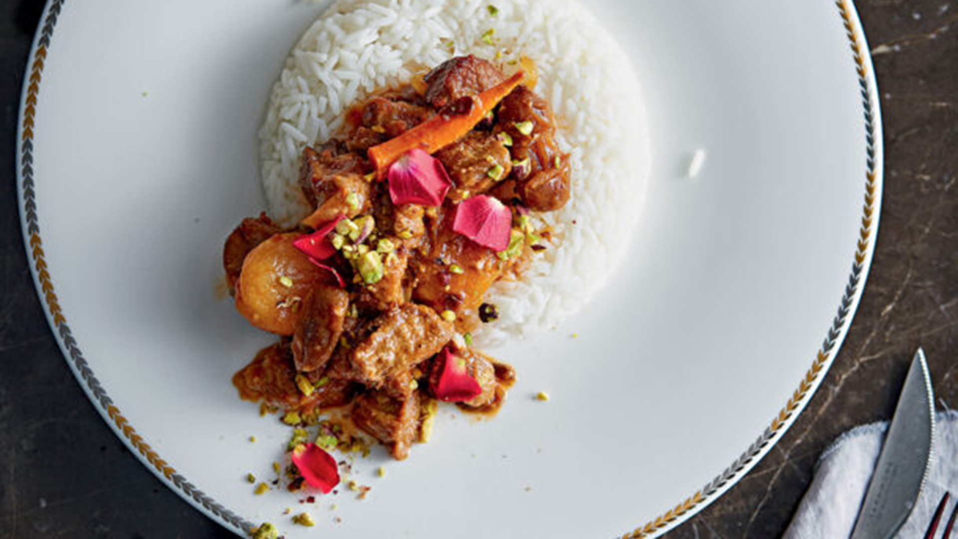 Με αρώματα και γεύσεις που μας ταξιδεύουν στη Μέση Ανατολή, αυτό το υπέροχα γλυκόξινο περσικό αρνί μοσχοβολάει μπαχάρια και ροδόνερο, και έχει μελωμένη γεύση ενισχυμένη από τα ξερά φρούτα.