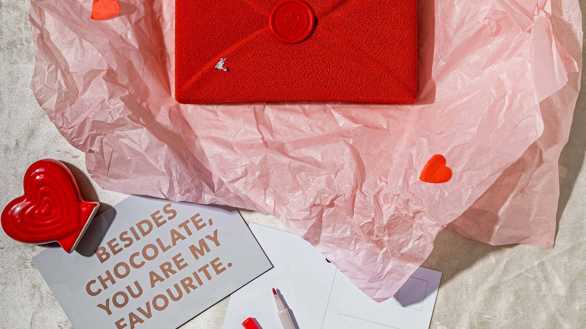 Αυτός ο φάκελος στέλνει το μήνυμα με πραλίνα. Η ομάδα του Madame Fraise έφτιαξε ειδικά για την ημέρα έναν φάκελο από σοκολάτα που αντί ερωτικής επιστολής κρύβει στο εσωτερικό του πραλίνα φουντουκιού, μους και μπισκότο φουντουκιού αλλά και καραμελωμένα φουντούκια! Αν προτιμάτε μπορείτε να μοιραστείτε με κάποιο αγαπημένο σας πρόσωπο το XL μπισκότο red velvet που έχει μαρμελάδα βατόμουρο, γκανάς βατόμουρο και λευκή σοκολάτα. Γ.Π.