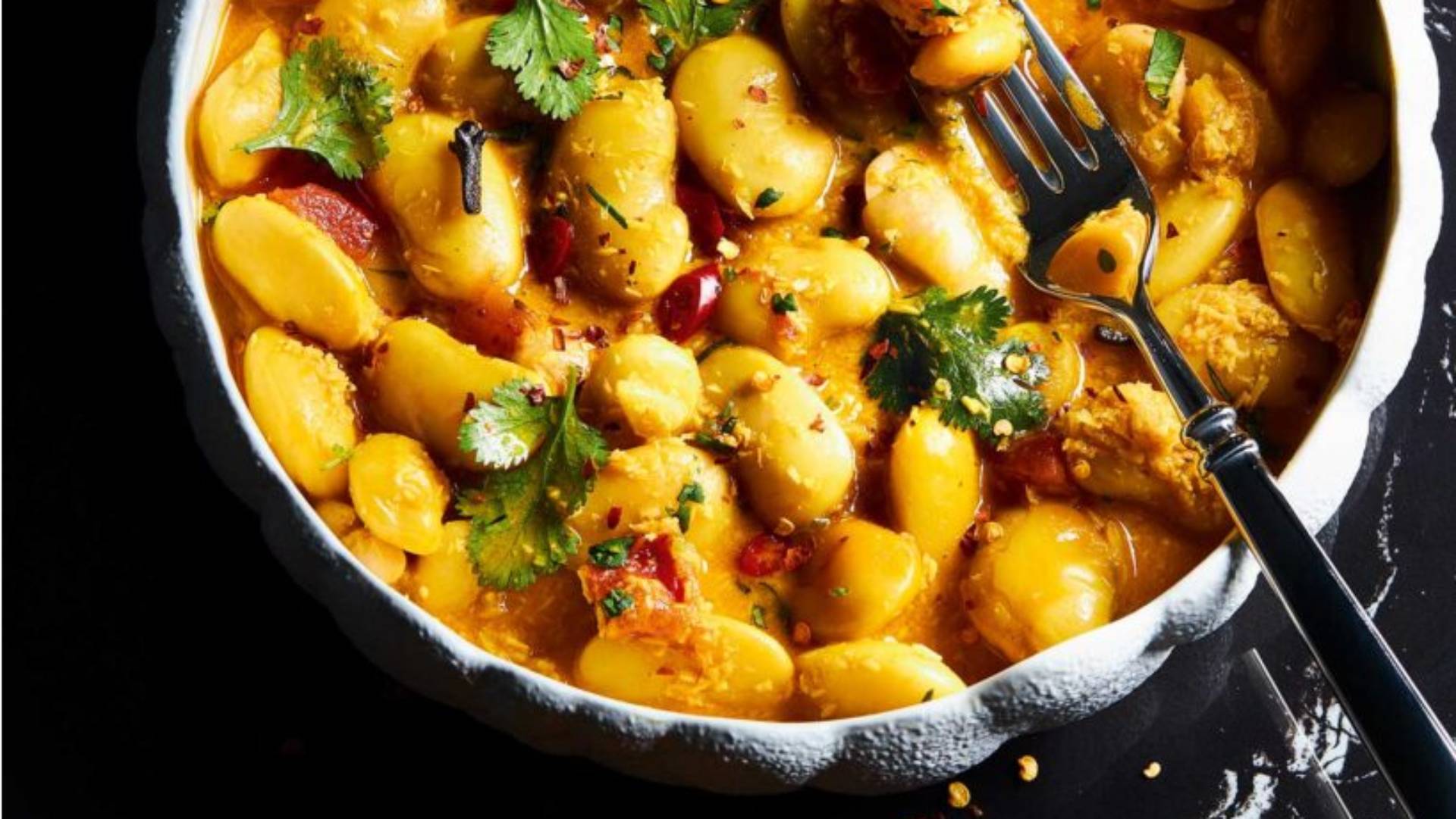 Είναι γνωστή η αγάπη των Ινδών για τα μελωμένα μαγειρέματα με όσπρια, αν και προτιμούν τα ρεβύθια και τα πιάτα dhal με φακές. Μπορούμε να χρησιμοποιήσουμε και άλλα φασόλια, λευκά και μεγαλόσπερμα, αλλά οι γίγαντες έχουν έντονη νοστιμιά, που δεν θα την καλύψουν τα άφθονα μπαχαρικά.