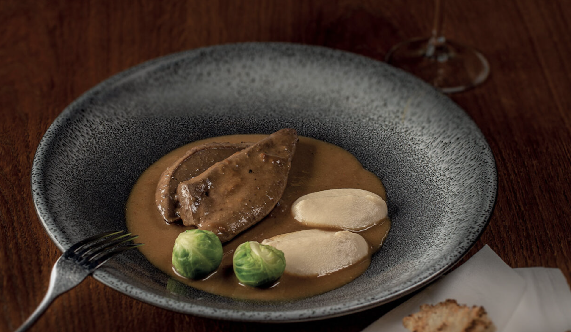 - Βάζουμε τις φέτες συκωτιού σε πιατέλα ή πιάτα, περιχύνουμε με τη σάλτσα και συνοδεύουμε με τον πουρέ μήλου. Αν θέλουμε, συμπληρώνουμε με λαχανάκια Βρυξελλών που έχουμε μαγειρέψει στον ατμό.