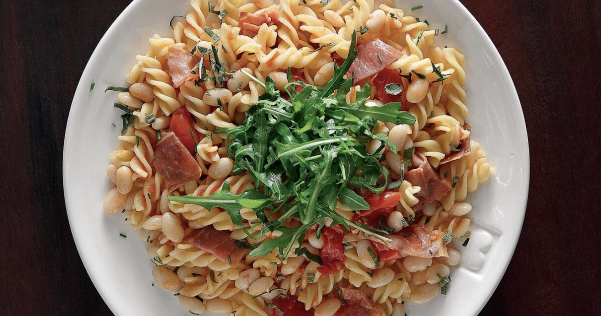 Προσούτο, φασόλια, ρόκα και, εννοείται, τυρί σε ένα χορταστικό κι εξαιρετικά θρεπτικό πιάτο ζυμαρικών που ξεφεύγει από τα συνηθισμένα και που αν έχουμε βράσει τα φασόλια ετοιμάζεται στο πι και φι.