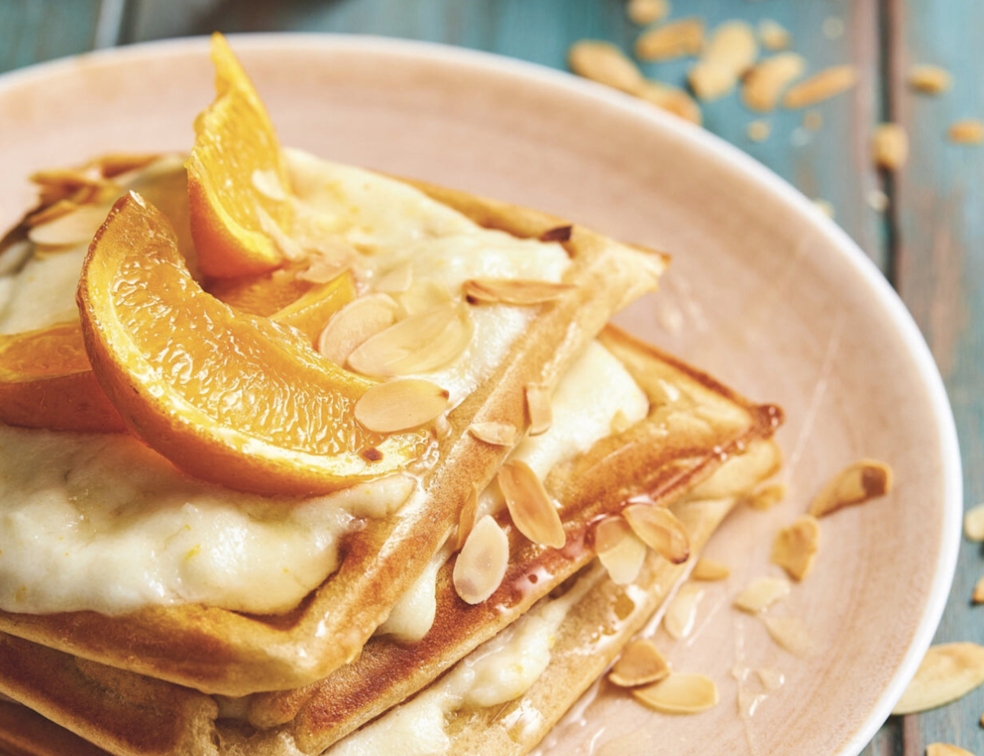 - Ρίχνουμε στην καυτή βαφλιέρα το 1/3 του μείγματος που ετοιμάσαμε και ψήνουμε σύμφωνα με τις οδηγίες του κατασκευαστή.