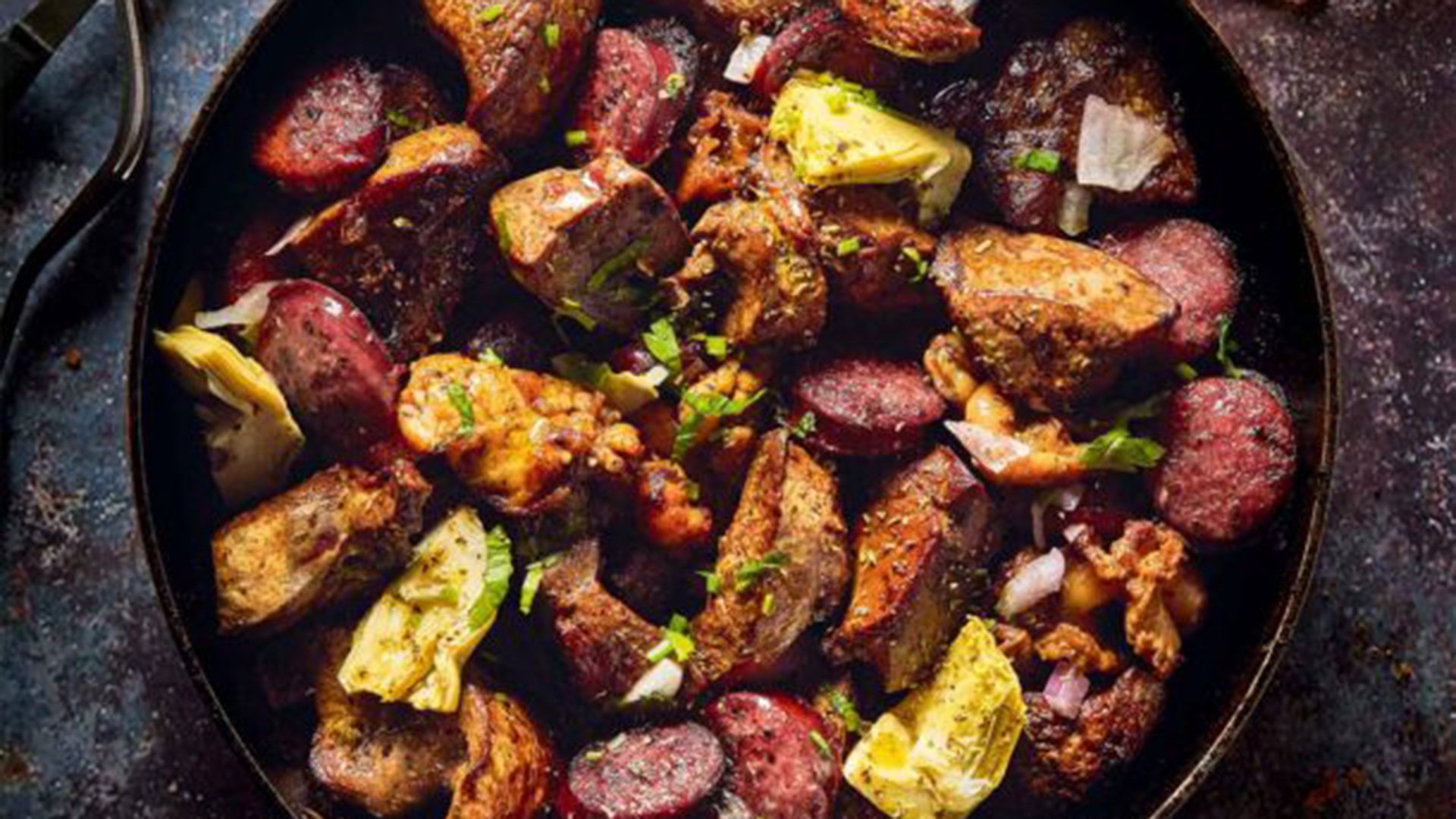 - Για να φτιάξουμε τη τηγανιά με αρνίσια συκωταριά και λουκάνικα, ξεκινάμε βάζοντας σε ένα μπολάκι τις φέτες αγκινάρας, το ξύσμα και αλατοπίπερο και περιχύνουμε με τον λεμονοχυμό.