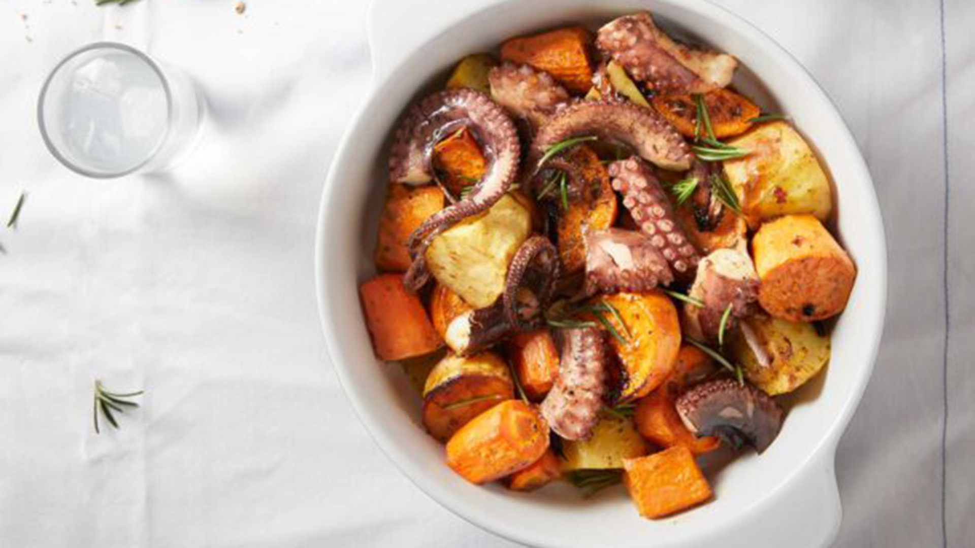 - Φουρνίζουμε και ψήνουμε για 20 λεπτά – το χταπόδι θα βγάλει τα υγρά του και δεν χρειάζεται να προσθέσουμε επιπλέον.
