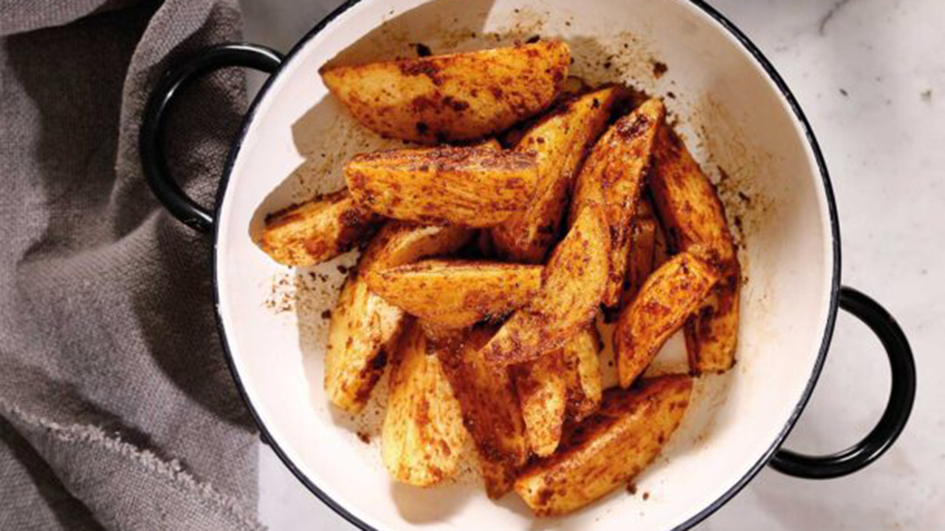 - Αδειάζουμε τις πατάτες με τη μαρινάδα, τις τακτοποιούμε στο ταψί σε μονή στρώση και τις ψήνουμε για 40 λεπτά.