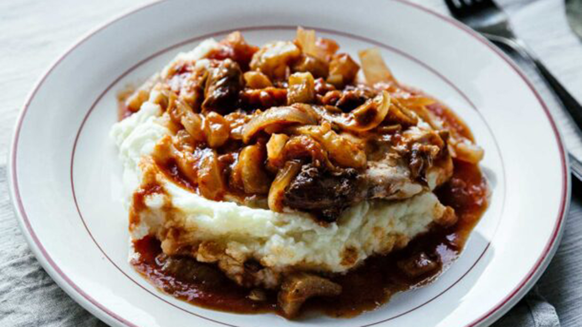 - Προσθέτουμε 400 ml νερό, το δαφνόφυλλο, το θυμάρι και τα ντοματάκια. Σκεπάζουμε την κατσαρόλα, μετριάζουμε τη φωτιά και μαγειρεύουμε για περίπου 20 λεπτά
