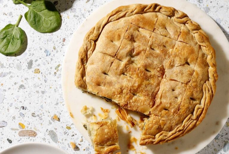 - Την ξεφουρνίζουμε και αμέσως τη χαράζουμε σταυρωτά με ένα κοφτερό μαχαίρι, για να φύγει ο ατμός και η υγρασία των χόρτων και να παραμείνει το φύλλο τραγανό.