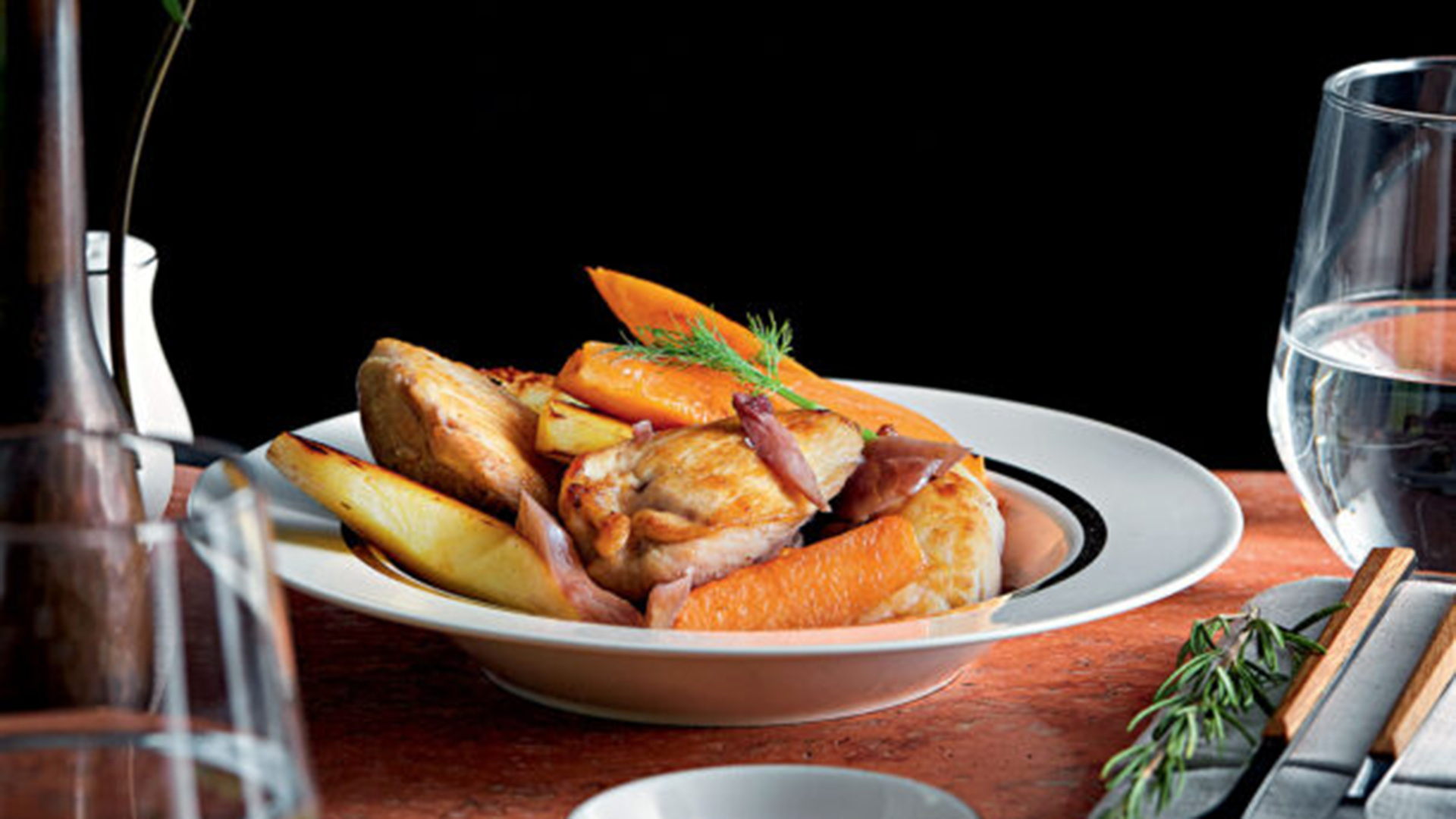 - Σερβίρουμε το κοτόπουλο escabeche με ψητές γλυκοπατάτες.
