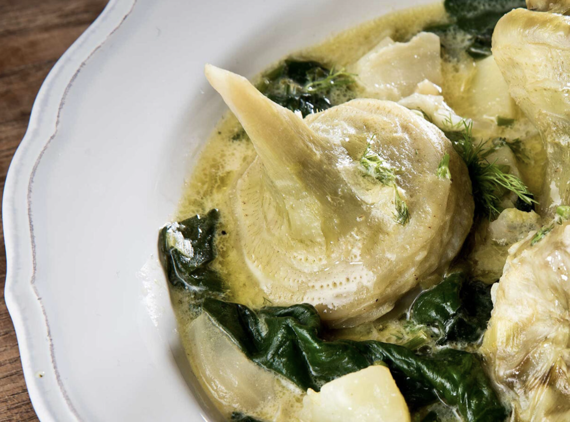 - Αφήνουμε για 10-15 λεπτά το φαγητό να «σταθεί» και σερβίρουμε τις αγκινάρες αυγολέμονο αλλιώς (με μαραθόριζα, σπανάκι και πράσο).