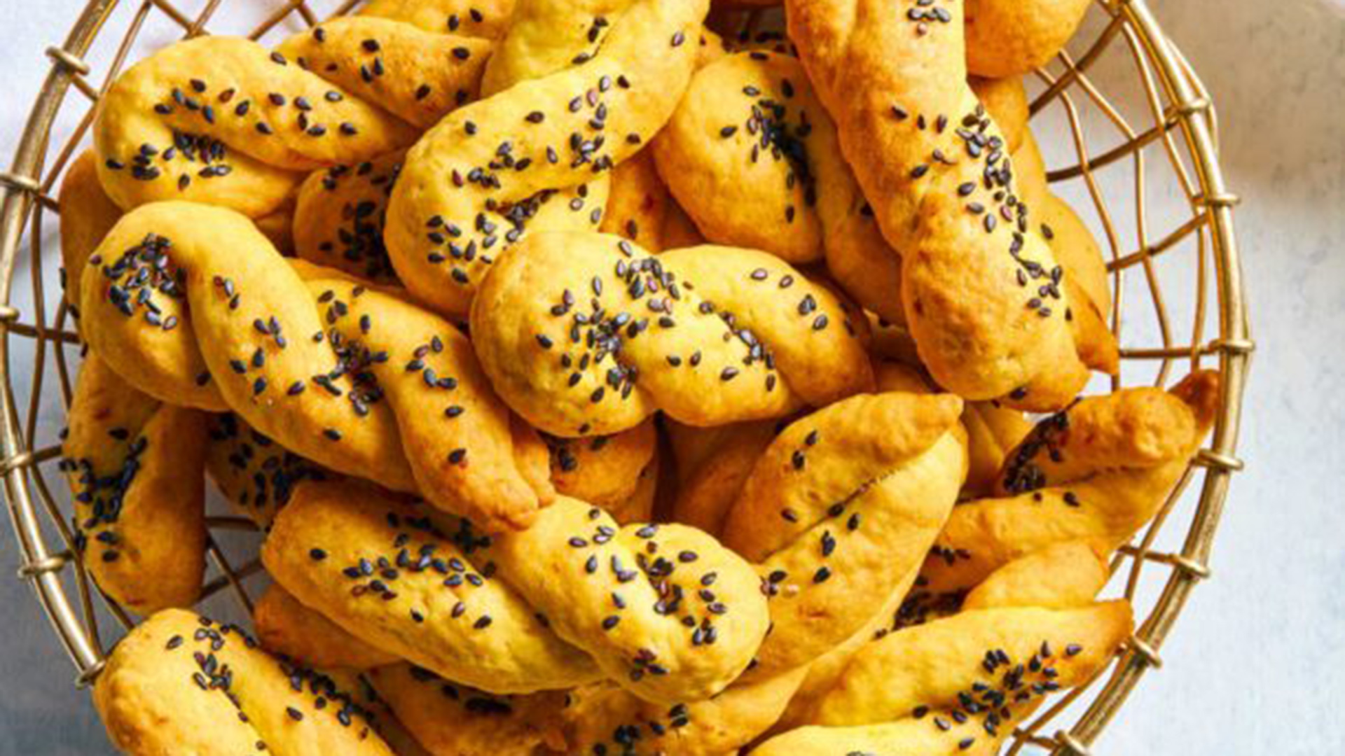 - Τα αλείφουμε ελαφρώς με λίγο νερό και τα πασπαλίζουμε με μαυροσούσαμο.