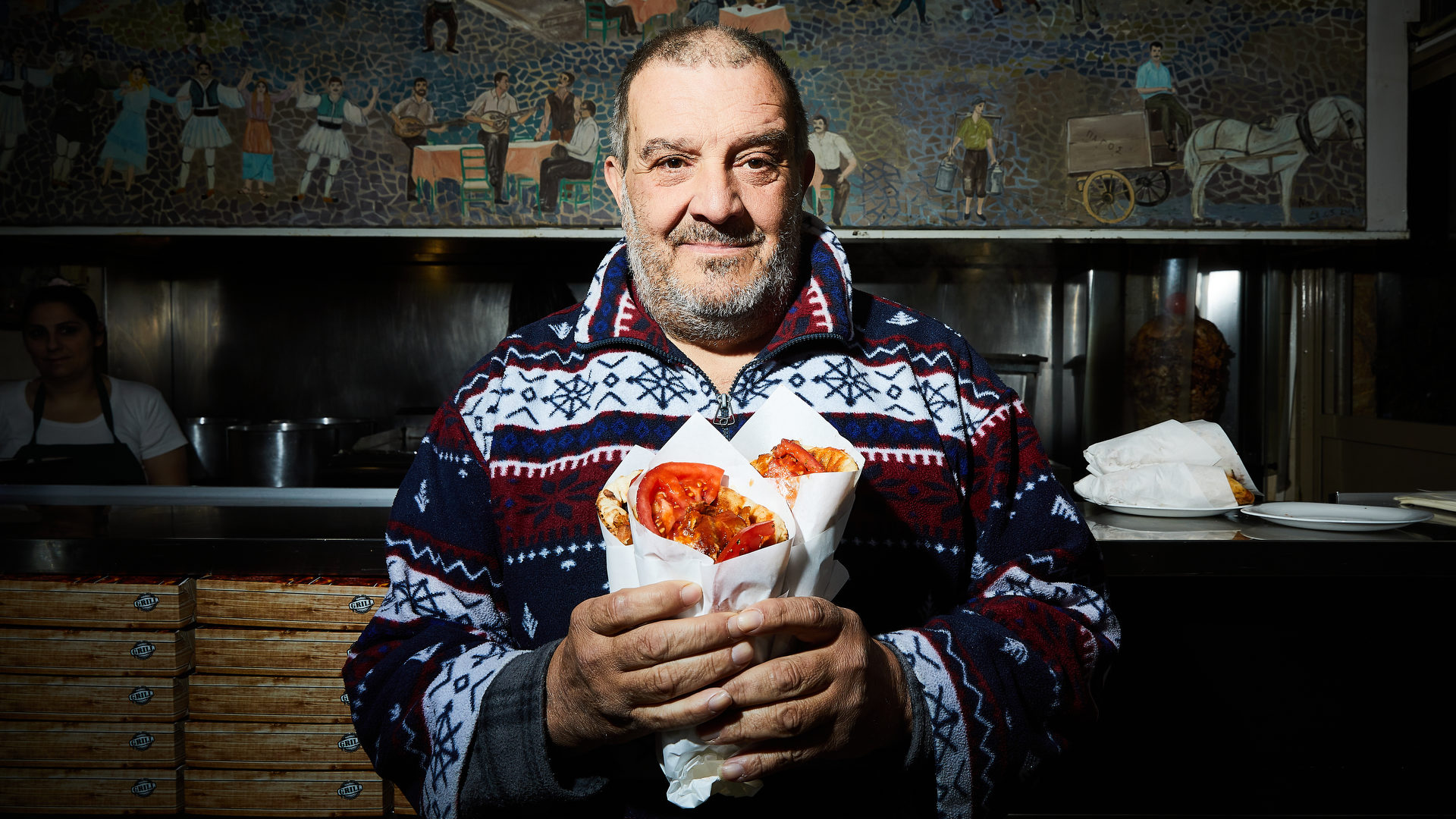 Ο Μπίλης με τον χειροποίητο γύρο του