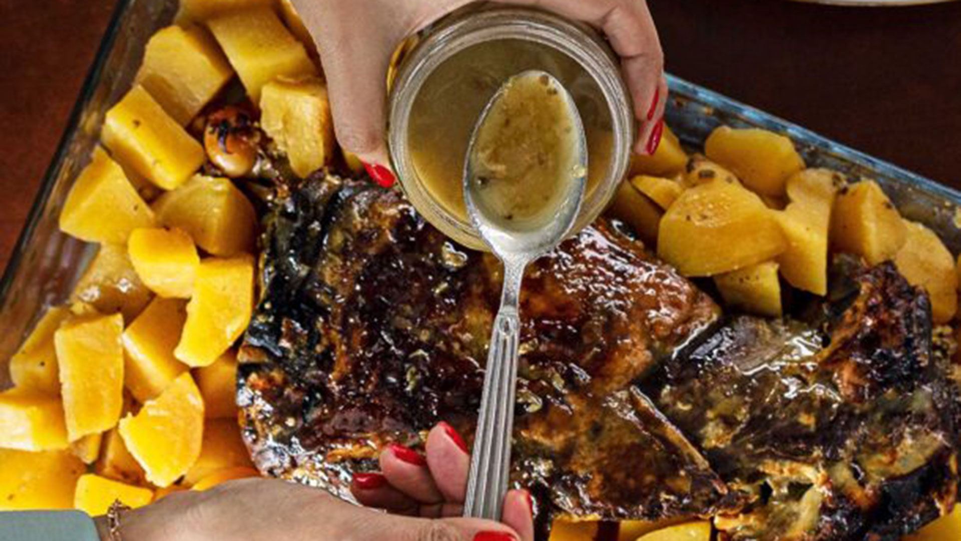Μετά τους μεζέδες έφτασε το φουρνιστό αρνίσιο μπούτι που ετοίμασε η Βίκυ Μπιντίρ-Καλαμάρη, μαζί με ολόγλυκες πατάτες, μαριναρισμένες με πορτοκάλι και μέλι.