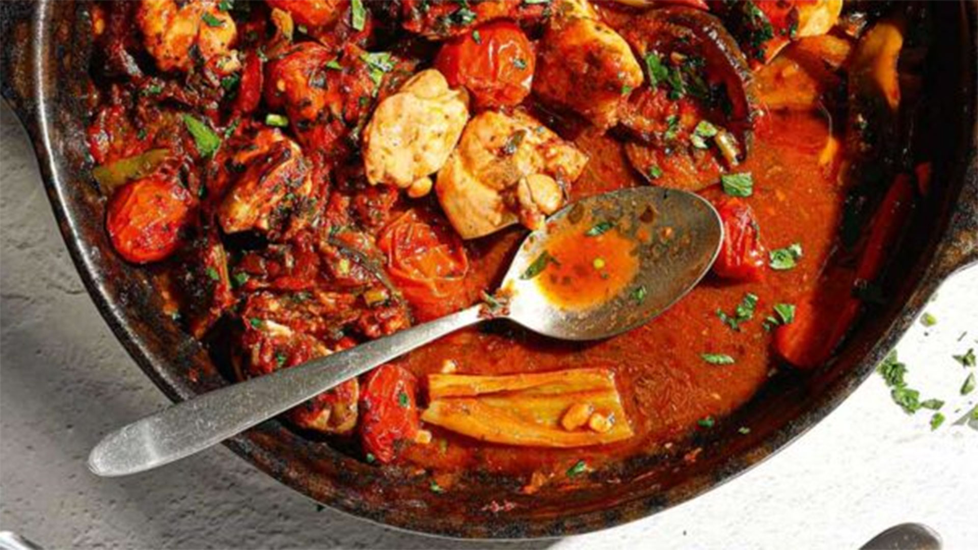 Το κοτόπουλο περιέχει σημαντικά ποσά πρωτεΐνης, είναι πλούσιο σε βιταμίνες του συμπλέγματος Β και ψευδάργυρο, βοηθώντας τη μεταφορά οξυγόνου και τη σωστή λειτουργία του ανοσοποιητικού. Η χρήση της ντομάτας και της πιπεριάς προσφέρει σημαντικές ποσότητες λυκοπενίου και βιταμίνης C, προσφέρoντας ισχυρή αντιφλεγμονώδη και αντικαρκινική δράση.