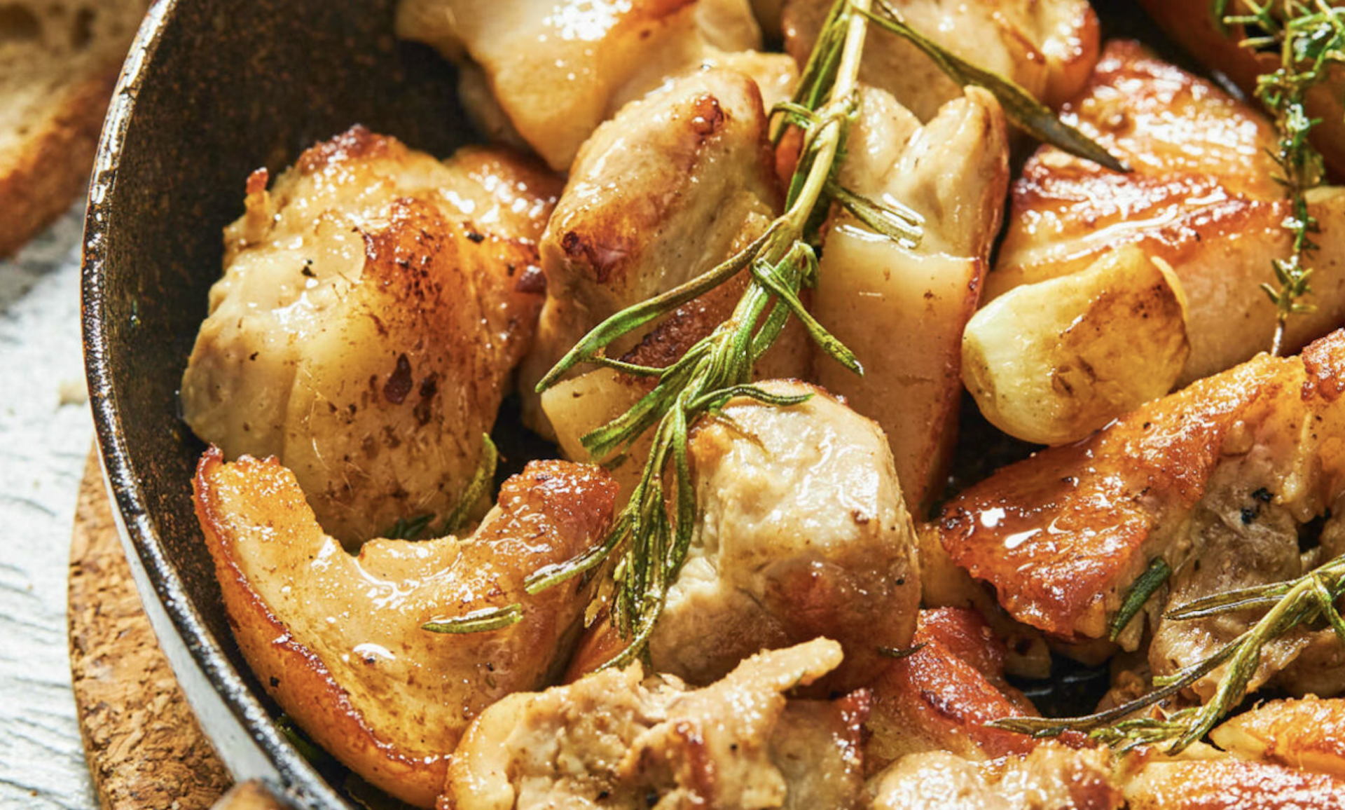 - 800 γρ. γουρουνάκι γάλακτος, από μπούτι ή χεράκι, με το δέρμα, κομμένο σε κομμάτια των 3 εκ.