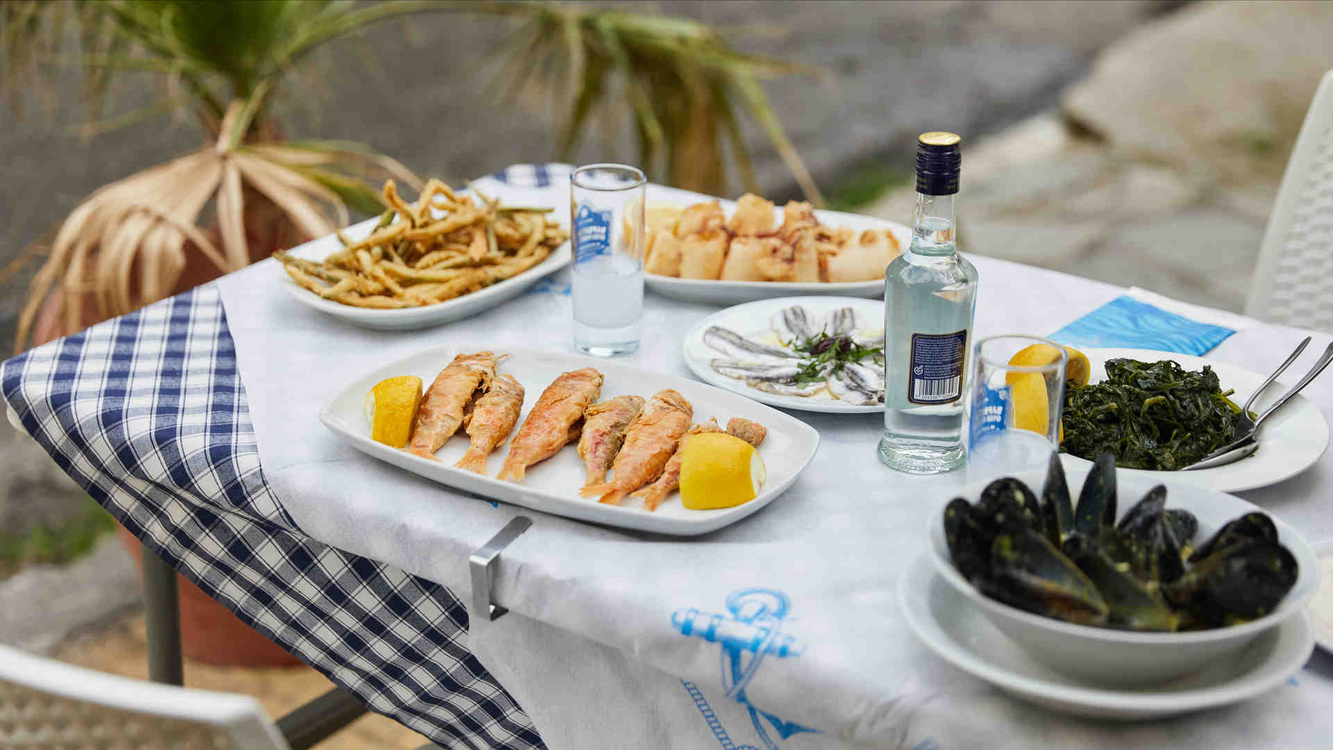 Καθίσαμε στα τραπεζάκια έξω από το μαγαζί, στρωμένα με καρό γαλανόλευκο τραπεζομάντιλο. Απέναντι, στη μικρή πλατεία, στη σκιά κάτω από τα δέντρα, υπάρχουν διάσπαρτα κάμποσα ακόμα τραπεζάκια, όλα γεμάτα Τετάρτη βράδυ – όσο καλοκαιριάζει, βγάζουν κι άλλα τραπέζια και ειδικά τα Σαββατοκύριακα γίνεται το αδιαχώρητο. Ξεκινήσαμε με υπέροχες τηγανητές πατάτες ροδοκόκκινες και πήραμε και τέλεια ταραμοσαλάτα κλασική με τα αυγά της να σκάνε στο δόντι, για να την απλώσουμε στο ξεροψημένο ψωμάκι. Ύστερα, μας έφεραν σταμναγκάθι καταπράσινο, βρασμένο to the point, γαυράκι φρεσκομαρινάτο κρουστό, ζωντανό και με την ξινάδα του, τηγανητά καλαμαράκια μέλι, σαλάχι χρυσοτηγανισμένο, τραγανό και αφράτο, ντολμαδάκια τυλιγμένα στην κουζίνα τους κι ένα τσικ λιγότερο μαγειρεμένα από ό,τι θα έπρεπε για να μελώσουν σωστά, και μύδια αχνιστά με κάτι ζουμιά του ονείρου.