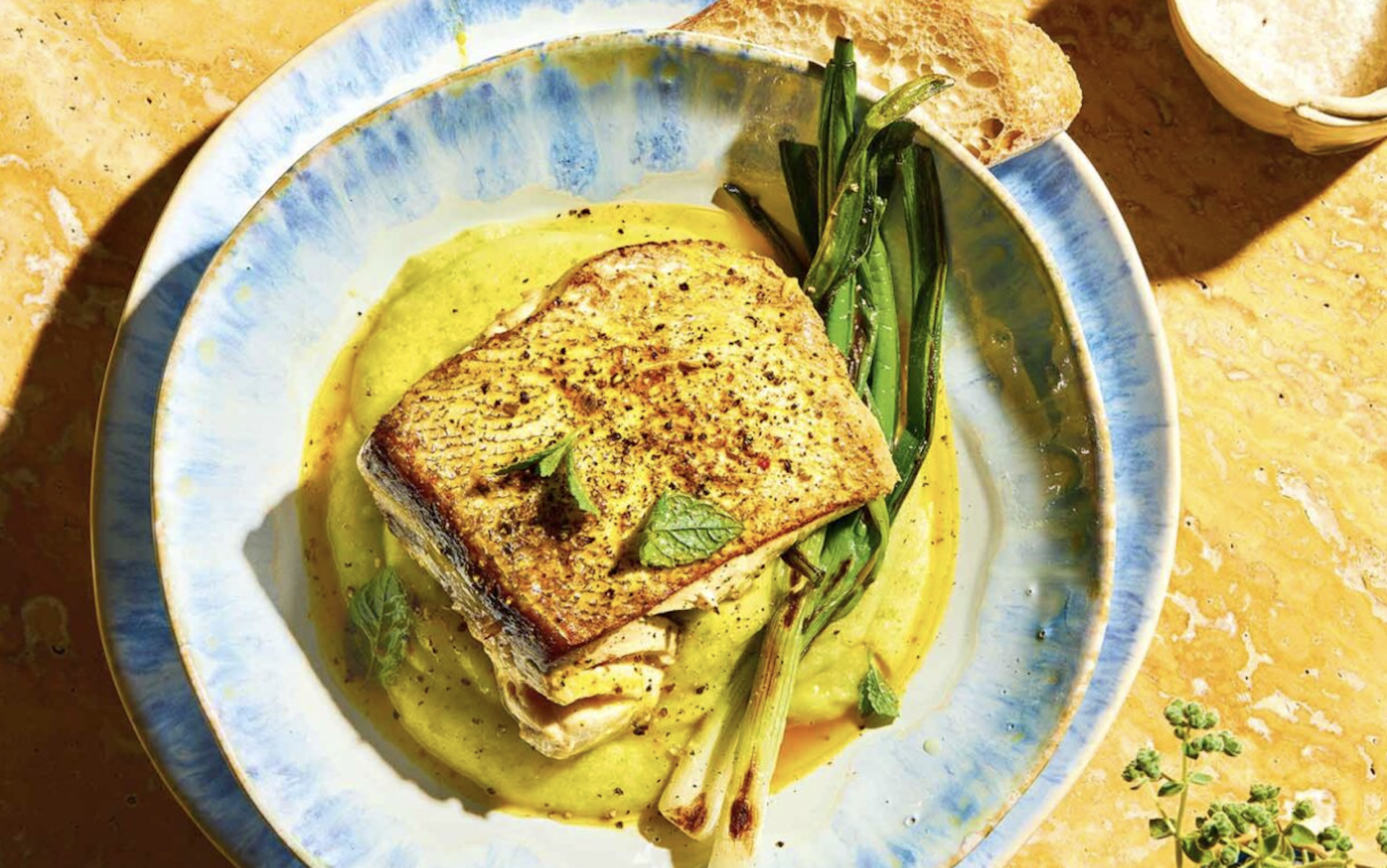 Σαρκώδες, πεντανόστιμο και εύκολο στο μαγείρεμά του, το μαγιάτικο συνοδεύεται σε αυτή τη συνταγή, με φίνο πουρέ κολοκυθιού και μυρωδάτο λαδολέμονο.