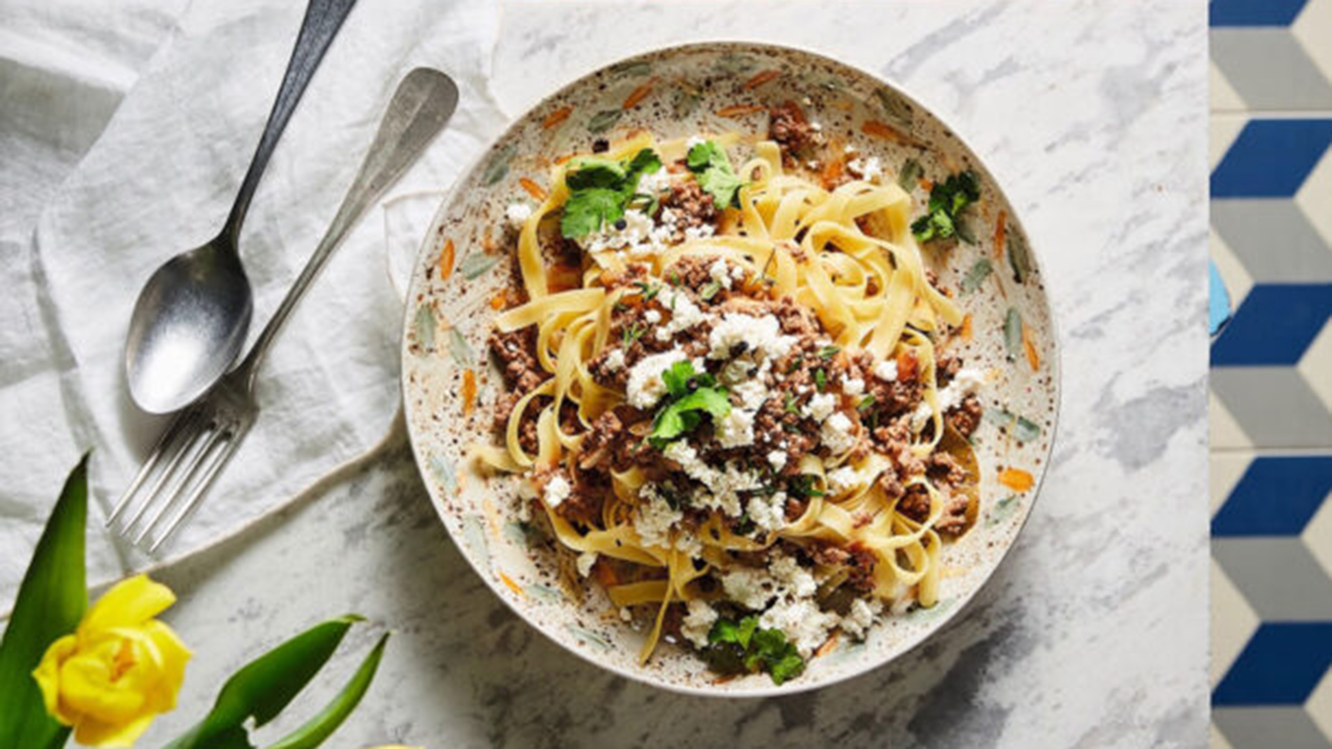 - Στο μεταξύ θα έχει δέσει και η σάλτσα ντομάτας, την οποία αδειάζουμε τώρα στον κιμά.
