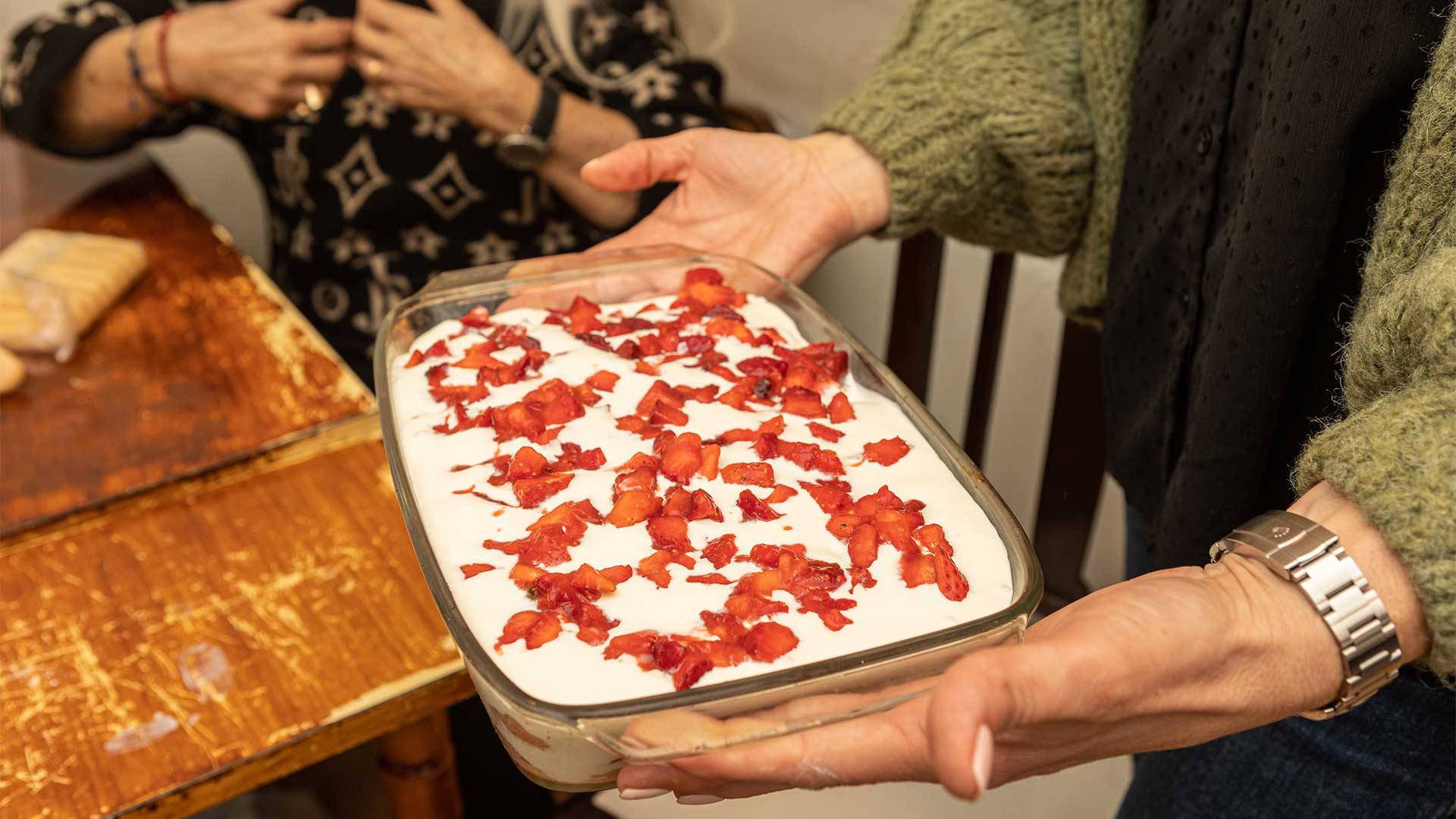 Στο διαμέρισμα της Ρωμαίας Λουιζιάνα στο Παγκράτι μαζεύτηκαν τρεις ακόμη φίλες της –η επίσης Ρωμαία Σερένα, η Ναπολιτάνα Λίλη και η Μαρία από την Κατάνια της Σικελίας– και μαζί βάλθηκαν να μας δείξουν πώς φτιάχνονται μερικά από τα ωραιότερα ιταλικά γλυκά της άνοιξης. Αν και συμφωνούν πως ένα κλασικό τιραμισού ταιριάζει με κάθε γεύμα, οι Ιταλίδες φίλες χαίρονται να αξιοποιούν τις ζουμερές φράουλες της εποχής για μια φρέσκια παραλλαγή του. Αφού τις αφήσουν να «μείνουν» μαζί με ζάχαρη, λεμόνι και λιμοντσέλο, μέχρι να βγάλουν τα ζουμιά τους, χρησιμοποιούν τον χυμό για να ποτίσουν τα σαβαγιάρ. Με στρώσεις από μπισκότα, κρέμα και ελαφρώς «μεθυσμένες» φράουλες ετοιμάζουν στα γρήγορα μια υπέροχη εποχική εκδοχή του.