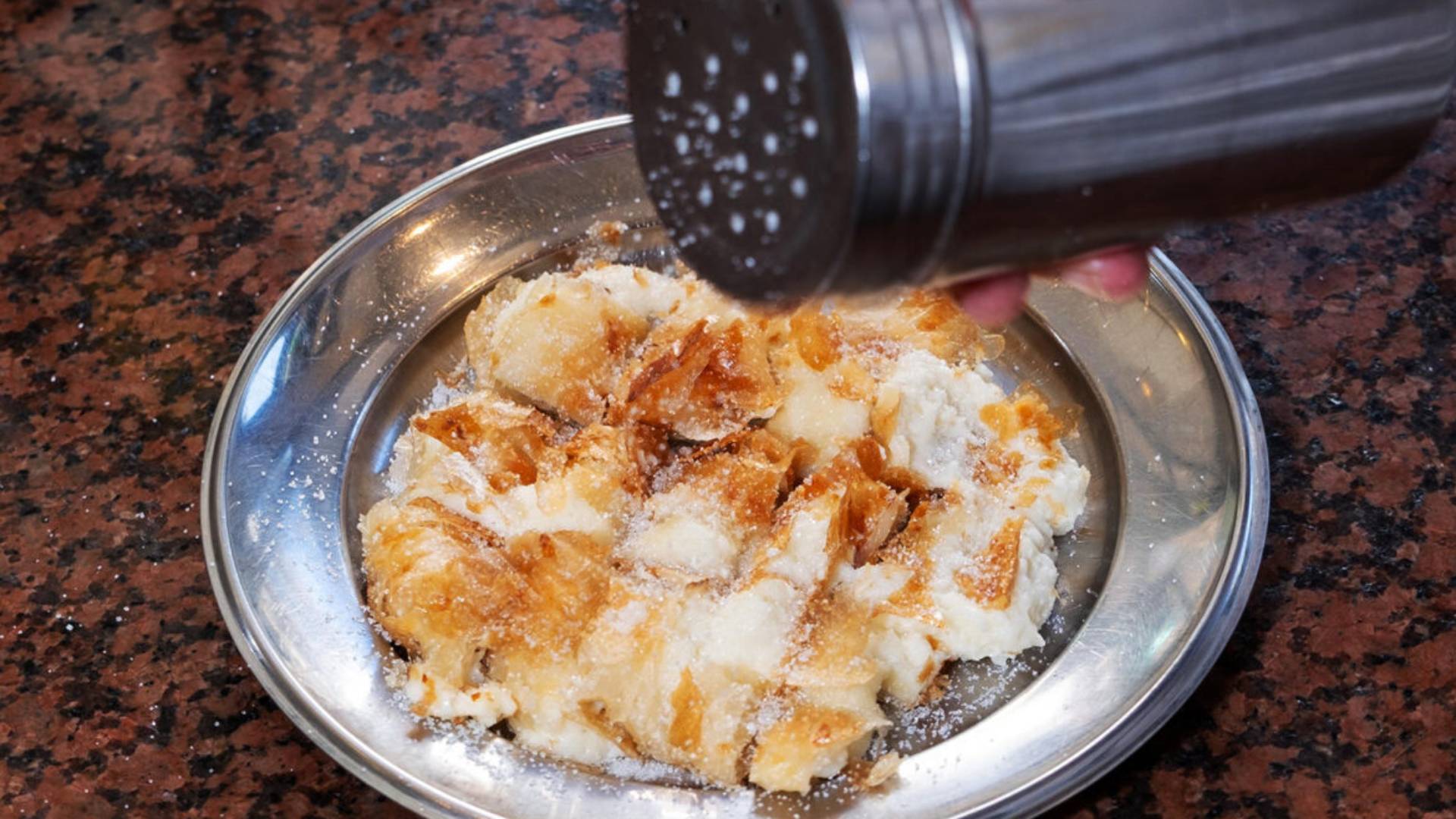 Η ιδιαίτερη συνταγή της μπουγάτσας του Ιορδάνη ήταν από την αρχή η ίδια. «Πάντα με μυζήθρα ή, όπως είναι η τωρινή της ονομασία, πηχτόγαλο Χανίων. Δεν μπαίνει άλλο υλικό στη γέμιση. Απλά τη χτυπάμε για λίγο στο μίξερ να διαλυθούν τυχόν γρομπαλάκια», εξηγεί ο Ιορδάνης. Όπως μας λέει, όλα τα υλικά που χρησιμοποιεί για την μπουγάτσα είναι ντόπια: το αλεύρι από τους Μύλους Κρήτης, το λάδι από την ΑΒΕΑ και η μυζήθρα από τρία διαφορετικά τοπικά τυροκομεία, του Μαλεφάκη (αναζητήστε και το εξαιρετικό πρόβειο γιαούρτι του οικογενειακού τυροκομείου, αν τύχει να βρεθείτε στα Χανιά), του Παπαγιαννάκη και του Αγροτικού Συνεταιρισμού Ρεθύμνου. «Ο παππούς έψηνε βέβαια σε ξυλόφουρνο, αυτό έχει αλλάξει. Είχε και ένα μπολ με στακοβούτυρο και, μόλις έβγαινε η μπουγάτσα από τον φούρνο, την άλειφε με το πινέλο», θυμάται.
