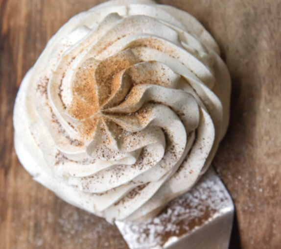 - Βάζουμε από πάνω 1 κουταλιά γέμιση, πασπαλίζουμε με κανέλα και σκεπάζουμε πάλι με έναν δίσκο μαρέγκας με το κορνέ, σφραγίζοντας τη γέμιση από παντού και σχηματίζοντας τη χαρακτηριστική ροζέτα στην κορυφή.